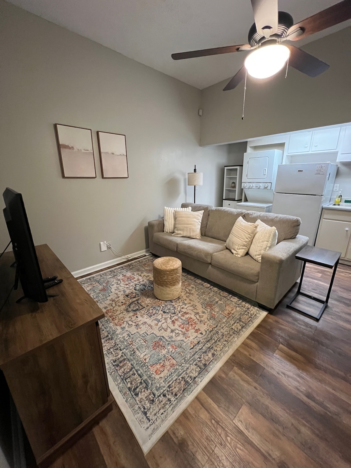 Mėgaukitės stilingu potyriu šiame centre esančiame kondominiume Starkvilyje! Yra: 1 miegamasis su dvigule lova, 1 pilna vonia su plytelių dušu, visa virtuvė su naujais prietaisais ir granito stalviršiais, maža priekinė uždengta veranda, dvigulė sofa-miegamoji, kilimas, skalbyklė ir džiovyklė, Wi-Fi, televizorius svetainėje ir miegamajame. Išmanusis autobusas yra už 1 kvartalo, kad galėtumėte nuvykti į MSU, medvilnės rajoną, pagrindinę gatvę arba tiesiog aplink Starkvilio rajoną. Stilingas būstas! Pirmame lygyje.
