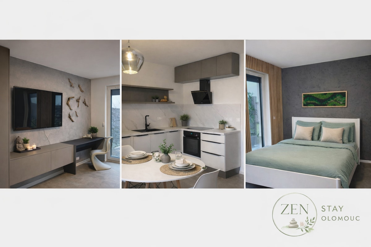 Šis išskirtinis būstas siūlo stilingą dizainą, įkvėptą minimalizmo ir maksimalaus komforto tuo pačiu metu. Aukštos lubos, oro kondicionieriai ir žaliuzės sukuria malonią ir erdvią aplinką atsipalaidavimui. Butas yra ramioje Olomouc dalyje prie Moravos upės, tačiau vos už kelių minučių kelio nuo istorinio centro. Privatus sodas ir kokybiški patogumai, o ne televizorius, projektorius , pabrėžia ramybę, susikaupimą ir tikrą atsipalaidavimą.