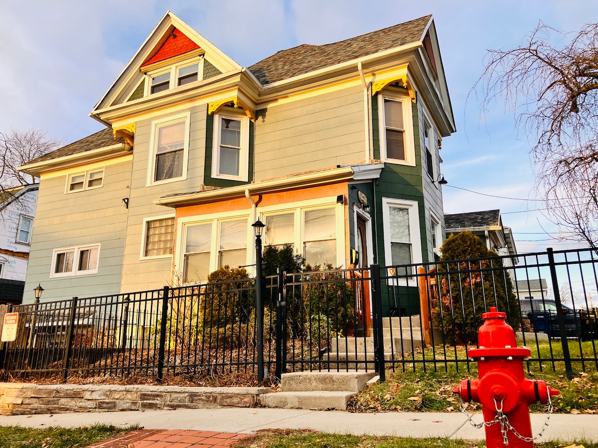 Stay in modernized comfort. Walk to coffee shops, restaurants, & parks. Beautiful, private upstairs apartment in a 20th-century Arts & Crafts House. Minutes to SU, downtown, hospitals, LeMoyne, & Destiny USA Mall. Located in the safe Eastwood neighborhood. ★ En-suite Washer & Dryer ★ HBO Max+Netflix+Local Stations ★ 1000 sq. ft ★ Ultra-fast WI-FI ★ Stainless Steel Appliances | Hardwoods ★ Luxury Bedding ★ Fresh, local coffee ★ Kitchen Essentials ★ FREE Travel Guide! ★ FREE Garaged parking