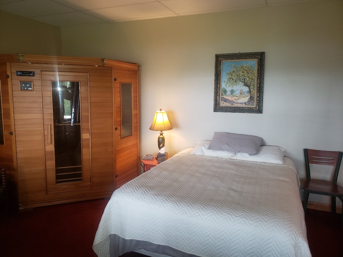 Privatus erdvus apartamentai su atskiru įėjimu ir visiškai nauju vonios kambariu. Būsite žemesniame lygyje su vonios kambariu, įskaitant skalbinius. Gražus dvigulės miegamojo komplektas. Patogi sekcija su paruošta vieta, kad galėtumėte pakelti kojas ir atsipalaiduoti. Jame yra ištraukiama karališko dydžio lova papildomam miegui. Žaidimų stalas su reikmenimis. Kavos baras su visais būtiniausiais dalykais, įskaitant mini šaldytuvą ir mikrobangų krosnelę. Jūs netgi galite sportuoti naudodami bėgimo takelį.