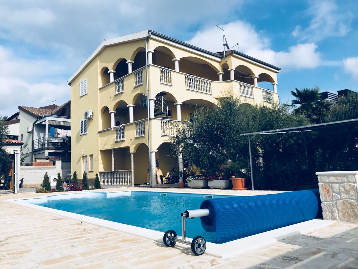 Pirmame ir antrame aukšte turime šeimos namą su apartamentais. Šalia namo yra privati automobilio stovėjimo vieta. Baseinas ir smuklė buvo pastatyti pernai svečiams ir privačiam naudojimui. Baseinas atidarytas 0-24.