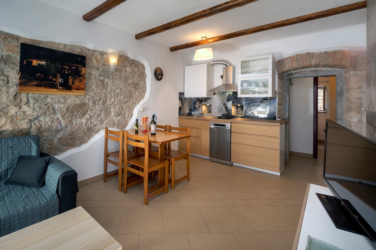 Atsipalaiduokite šiame ramiame 2 miegamųjų bute su privačiu sodu ir terasa, esančiame Tar kaime. Vos už 1,2 km nuo paplūdimio keliu (15 min. pėsčiomis arba 3 min. automobiliu) ir netoli parduotuvių, restoranų ir kepyklų. Pilnai įrengta virtuvė, oro kondicionierius, belaidis internetas ir nemokama privati automobilių stovėjimo aikštelė. Puikiai tinka poroms, šeimoms ar draugams, tyrinėjantiems Porečą ir Istrijos pakrantę.