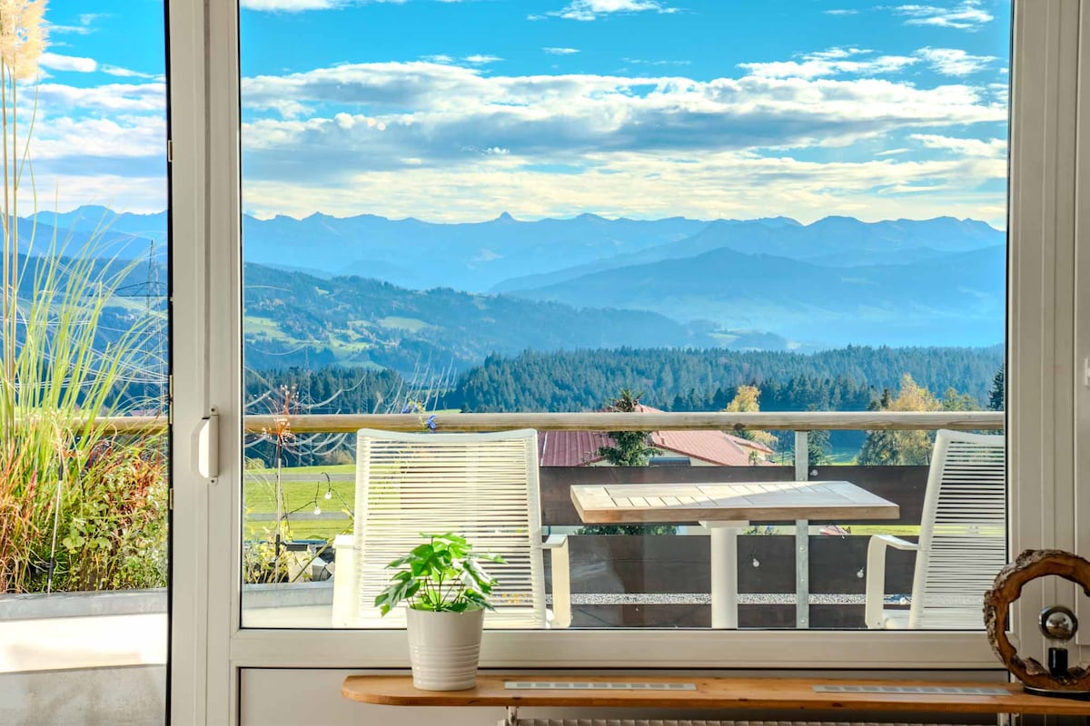 Mūsų išskirtinis butas yra tarp Allgäu Alpių ir Konstanco ežero. Įranga: - Nauja virtuvė-lova su svetaine - Atskira svetainė su aukštos kokybės sofa-lova 2 vaikams - Miegamasis su dvigule lova - Erdvus vonios kambarys su vonia ir skalbimo mašina Laisvalaikis: Mūsų butas yra idealus atspirties taškas daugeliui potyrių Allgäu. Netoliese yra Westallgäu dviračių takas ir tako įėjimas.