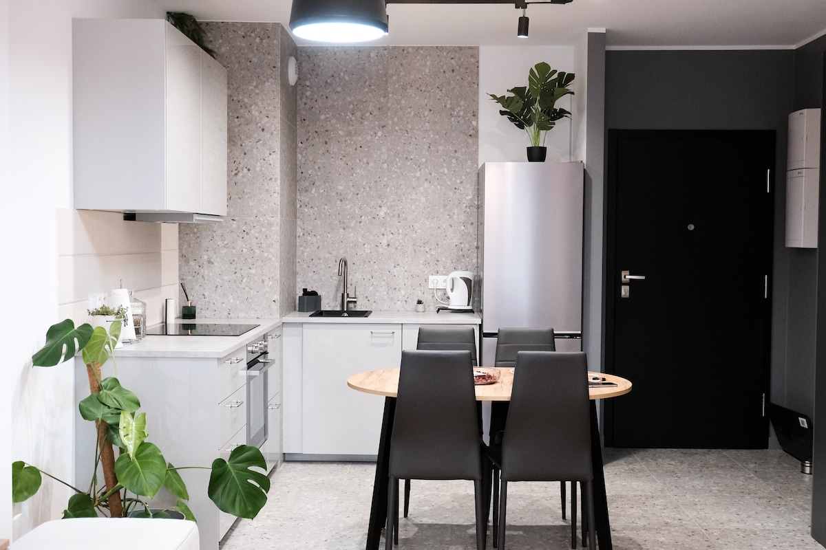 Sveiki atvykę į butą Vroclavo verslo centre! Butas, kuriame dera modernumas ir komfortas. Mūsų butas suprojektuotas galvojant apie jūsų komfortą, suteikiant viską, ko reikia atsipalaiduoti ir dirbti. Erdvus butas puikiai tinka poroms ir verslo keliautojams.
