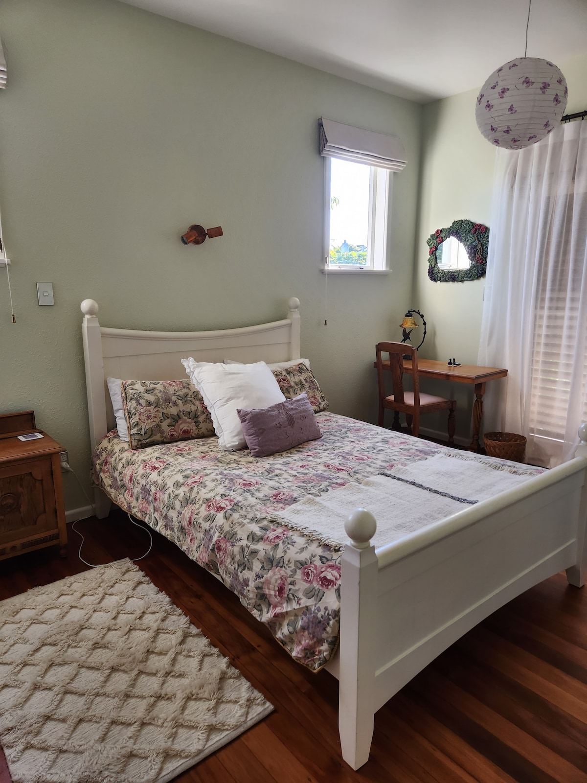 Trys Air BnB kambariai yra apačioje. Šeimininkai yra viršutiniame aukšte. Miegamasis, atsuktas į šiaurę, yra labai saulėtas ir lengvas. Miegamajame yra dvi kėdės su kavos staliuku. Taip pat yra virtuvėlė su mikrobangų krosnele, šaldytuvu, skrudintuvu ir sumuštinių presu. Virtuvėlėje yra didelis stalas su 2 kėdėmis, prie kurio galite pavalgyti ir (arba) naudotis nešiojamuoju kompiuteriu, jei dirbate, arba galite jį naudoti maisto produktams ir pan. Yra vonios kambarys su tualetu ir dušu. Iki dušo yra laiptelis