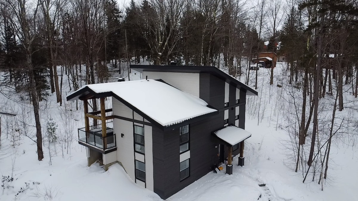 Namelis yra skandinaviško stiliaus mini namelis, kuris žiemą patiks gamtai, ramybei ir slidinėjimo trasoms, pvz., pasivažinėjimams dviračiais ir žygiams vasarą. Šis poilsio namelis buvo suprojektuotas harmonijoje su jo aplinka. Tiesą sakant, jo dydis leidžia mėgautis gamta ir sumažinti jos ekologinį pėdsaką. Su dviem miegamaisiais, židiniu, didele terasa ir SPA, jis yra pilnai įrengtas, kad atitiktų jūsų poreikius. Atvykite ir atsipalaiduokite šiuose unikaliuose namuose! CITQ pažymėjimas Nr. 311739