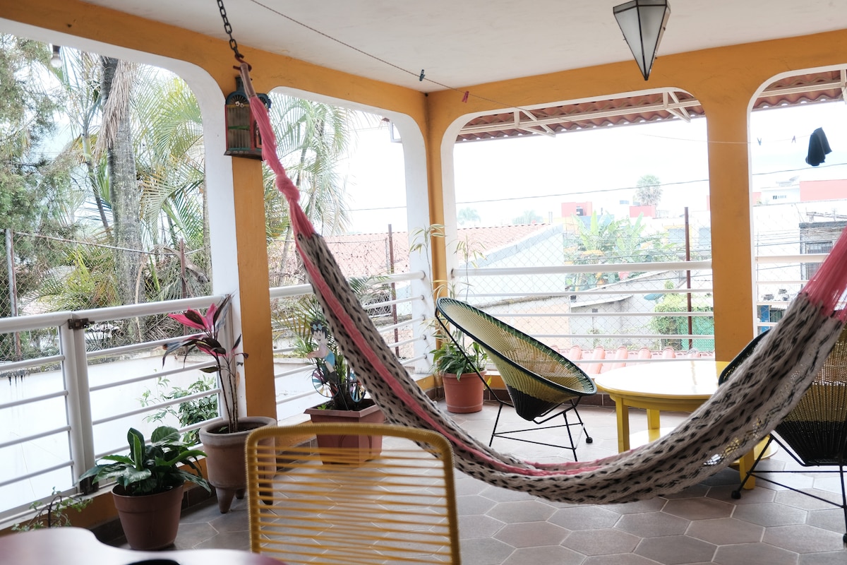 3 nuostabūs miegamieji, 2 su savo terasa, iš kurios atsiveria vaizdas į aukščiausią Meksikos kalną - didingą Pico de Orizaba. *Oro kondicionierius. *Nemokama automobilių stovėjimo aikštelė garaže (7.00-9.00 val.). Žr. toliau pateiktą informaciją *Ramus rajonas *Įskaičiuoti pusryčiai Vienintelė nakvynė su pusryčiais Orizaboje. Lengva pasiekti populiarias parduotuves ir kavines. Centrinė vieta, tačiau yra viename gražiausių Orizabos rajonų. 2 kvartalai nuo Poliforum Mier y Pesado ir kelios minutės pėsčiomis iki Coliseo La Concordia.