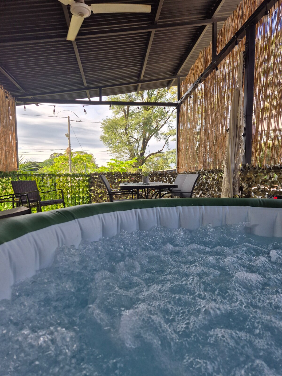 Bambura trobelė Nr. 2: pastatyta iš bambuko ir medienos, todėl būstas yra šiltas ir jaukus. Įspūdingų kalnų apsuptyje. Galite stebėti pro šalį einančius mažus paukščius, tukanus, beždžiones ir kitus gyvūnus. Balkonas, vaizdas į kalnus. Puikiai tinka dirbti nuotoliniu būdu arba atsipalaiduoti. Studijos tipo erdvė su pilna lova. Pilnai įrengta. Bendras baseinas (4x3 m). 4 trobelės teritorijoje. Interneto šviesolaidis. Rekomenduojame visureigį arba 4x4 automobilį. Esame Playa Hermosa kalne, netoli Uvitos ir Marino Ballena nacionalinio parko.