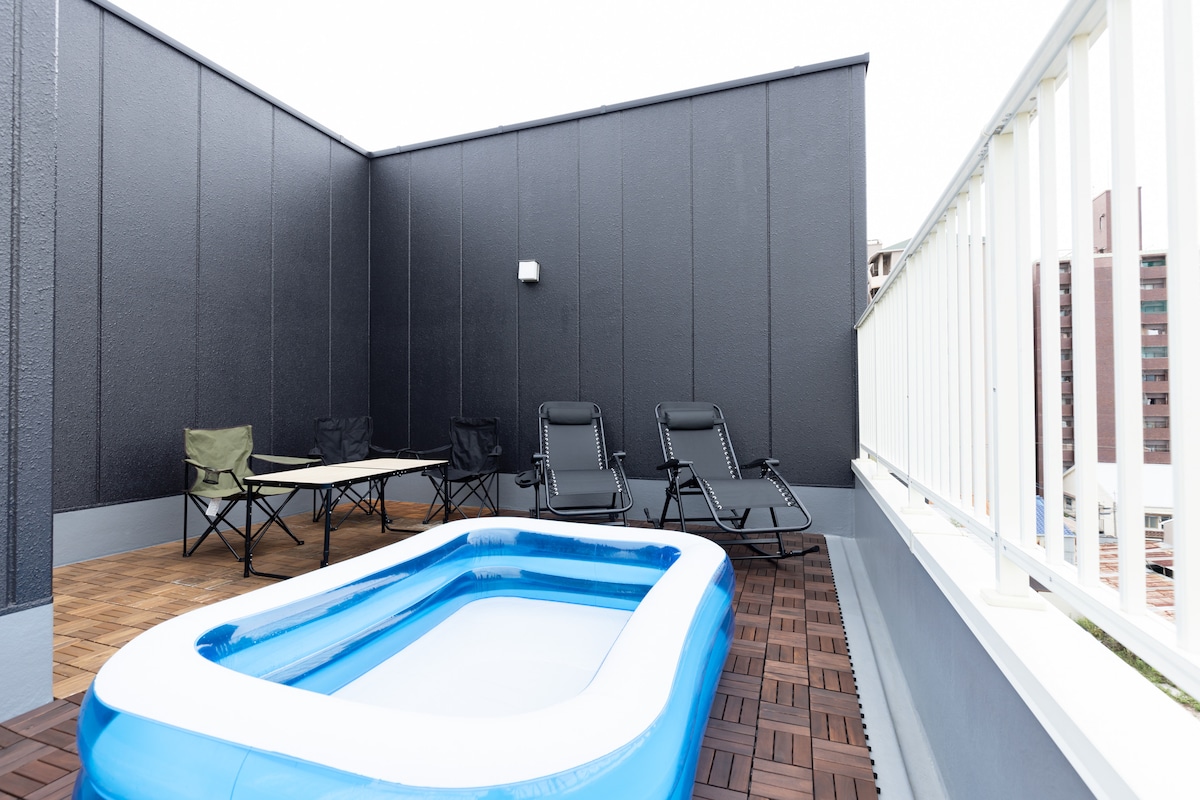 Viršutinio aukšto terasa su baseinu, 7 minutės nuo Nankai Shin-Imamiya stoties, 3 minutės nuo Hanazonocho stoties, sporto salė vietoje, 5 minutės traukiniu iki Namba