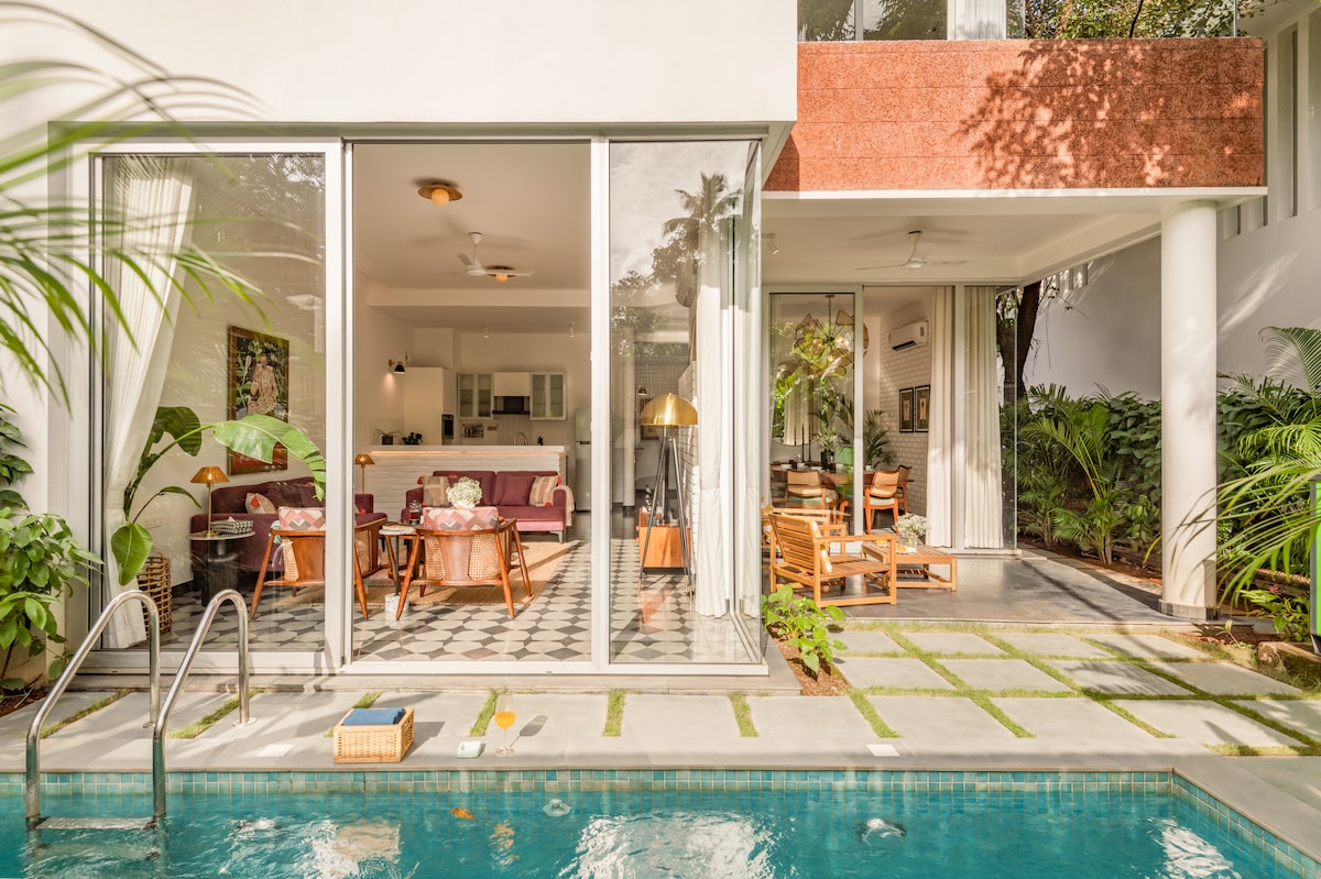 Villa Amarelo , North Goa The Boho-luxury private pool villa stands at a calm private location with the view of the lush greens of the hills and the paddy fields at the rear and stunning sunsets at the front.Located 30 mins from the new MOPA airport , a 10 min drive away from the closest beaches and a 5-min drive from the Chapora river banks, the villa lies at the centre for travellers willing to explore the beaches at Morjim, Ashwem, Arambol, and Vagator, Anjuna, Baga, Calangute alike.