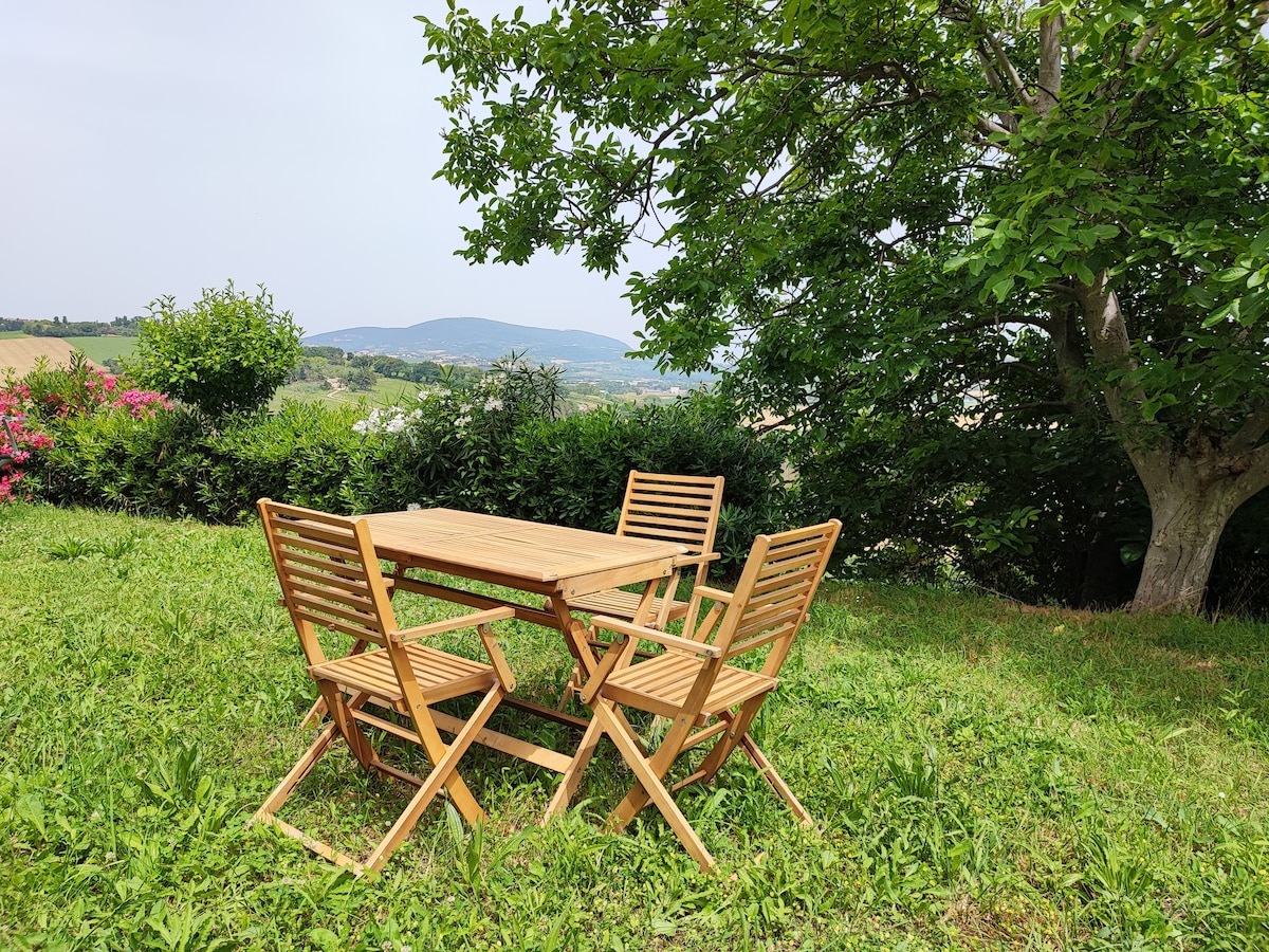 A delightful cottage with a garden and swimming pool for the exclusive use of guests in a quiet, green setting, a 10-minute drive from the Conero Riviera. You can relax and cool off in the small outdoor pool (5 meters long, 3 meters wide, 1.20 meters high), open from early May to early October. Garden with umbrella, loungers, and barbecue. 3 bedrooms, 2 bathrooms, attic with gym and games/reading corner. 16 sq m terrace with swing overlooking the Sibillini Mountains. Private parking