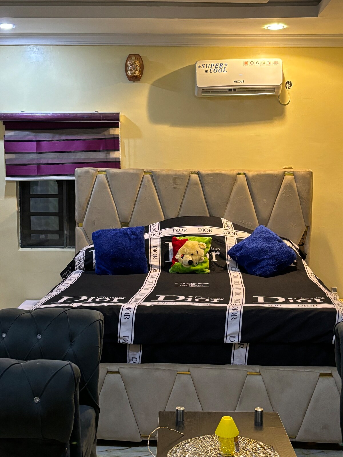 Išskirtinis 2 miegamųjų poilsio namelis netoli tarptautinių alaus daryklų. Ilesa NOT Ilerin (Google negali patvirtinti adreso) It off Adebayo Abon. Ramus poilsis su šiuolaikiniais patogumais. Šis išskirtinis 2 miegamųjų poilsio namelis, įsikūręs netoli tarptautinių alaus daryklų, yra sukurtas taip, kad suteiktų ramų ir stilingą pabėgimą, kuriame galėsite atsipalaiduoti ir atjaunėti. Apgalvotai įtraukti visi būtiniausi patogumai, tai yra daugiau nei tik vieta apsistoti - tai komforto prieglobstis. DRAUDŽIAMA RENGTI VAKARĖLIUS.