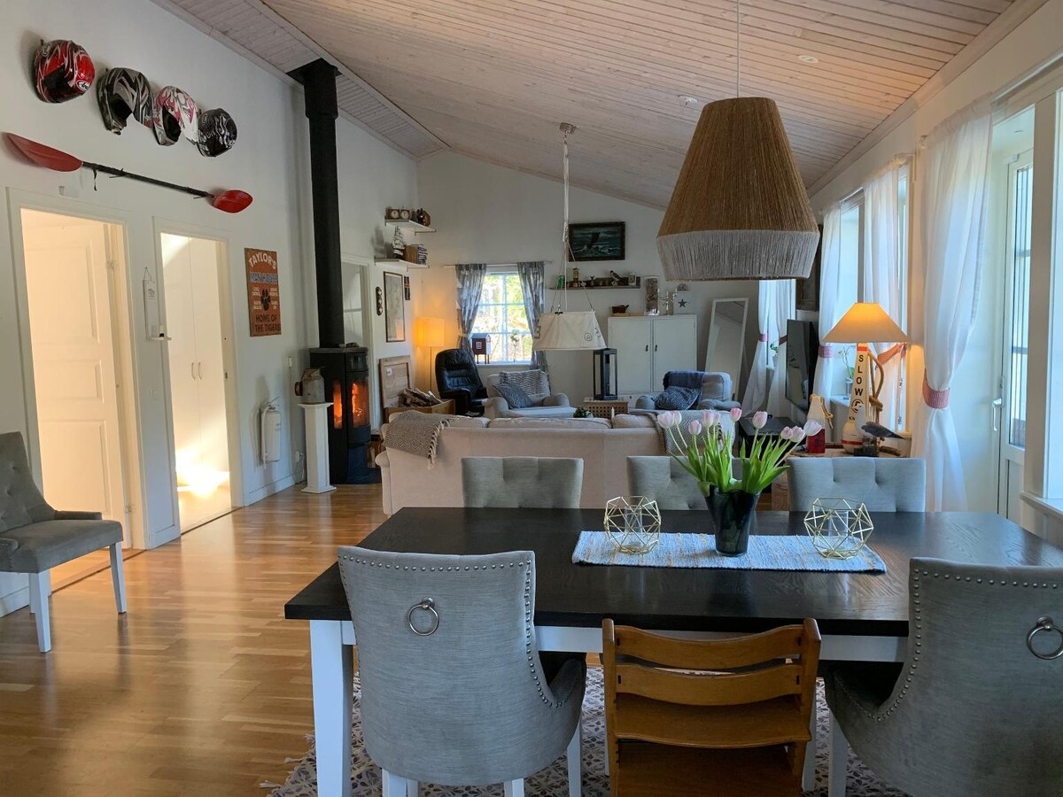 Sveiki atvykę į Kallrigafjärden, kur karaliauja ramybė toli nuo miesto triukšmo. Mėgaukitės vaizdu į vandenį, ramybe ir gamtos grožiu iš arti. Namas, pastatytas 2008 m., siūlo visus jums reikalingus patogumus. - Vaizdas į Kallrigafjärden - Privati pirtis - Visiškas ramybė ir privatumas - Atvirų grindų planas, didelė virtuvė ir erdvios socialinės erdvės - 4 miegamieji, 2 vonios kambariai ir vonios kambariai. - Yra patalynė ir rankšluosčiai - Didelė terasa su kepsnine, valgomuoju stalu ir lauko baldais - Televizija, garso sistema ir Wi-Fi - Laddbox