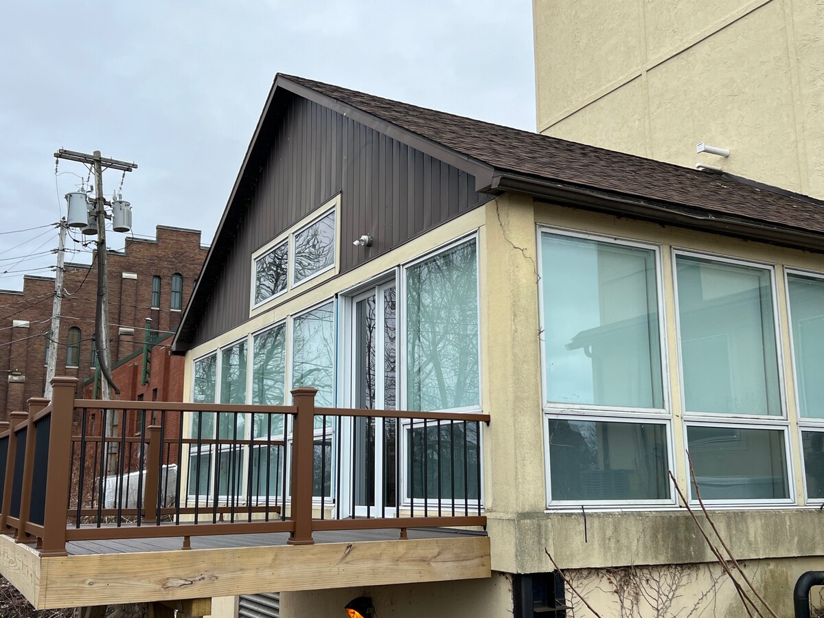 Šis AUKŠTOS KLASĖS 1 miegamojo butas yra daug geresnis už viešbučio kambarius. Jame yra NEMOKAMAS BELAIDIS INTERNETAS, 50 colių ir 32 colių ROKU televizoriai (naudokite mėgstamiausias programėles), kabelinė televizija per „Spectrum“ programėlę, DVD/CD/„Blue Ray“ grotuvas, bidė, skalbimo mašina su džiovintuvu, sūkurinė vonia, įrengta virtuvė. Miegamasis su geriausia plačia dvigule lova, spinta / spintelė, komoda, naktiniai staliukai, vonios kambarys ir svetainė su lengvai naudojama sofa-lova. Dujos, elektra, vanduo, sniego valymas, automobilių stovėjimo aikštelė, tikros kietmedžio grindys, virtuvės ir vonios kambario plytelės. DIDELĖS NUOLAIDOS ILGESNEI VIEŠNAGEI!