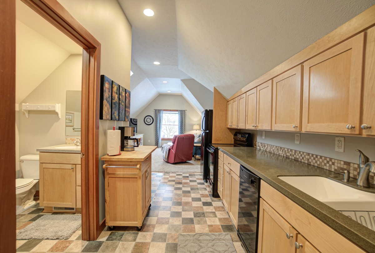 Welcome to your comfortable and thoughtfully furnished home-away-from-home in the heart of Holland. This private upper-level apt features vaulted ceilings, great natural light, and a clean, open layout that makes the space feel warm, inviting, and easy to settle into. Whether you're in town for work, relocating, visiting family, or simply needing a quiet place to land for 30+ days, this apartment is designed for extended living. You’ll find all the essentials of home—without any of the hassle.
