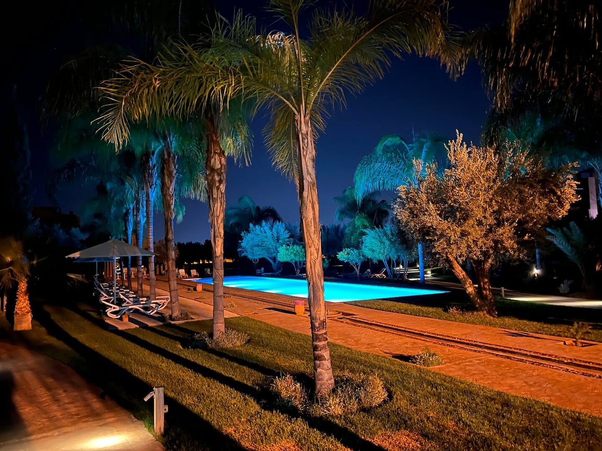 Atsipalaiduokite šioje tylioje ir stilingoje erdvėje. Premium Village Ground Floor Studio Marakešo širdyse. Autentiškas rajonas, 10 min. Guéliz, 10 min. Hivernage (kazino), 10 min. Jemaa el-Fna. Netoli souks, mečetės, hamamo. Saugi gyvenamoji vieta su 5 baseinais, privačia terasa, vieta automobiliui. Įrengta studija: virtuvė, 2 televizoriai, IPTV, greitas Wi-Fi. Idealiai tinka atrasti Marakešą su visais patogumais.