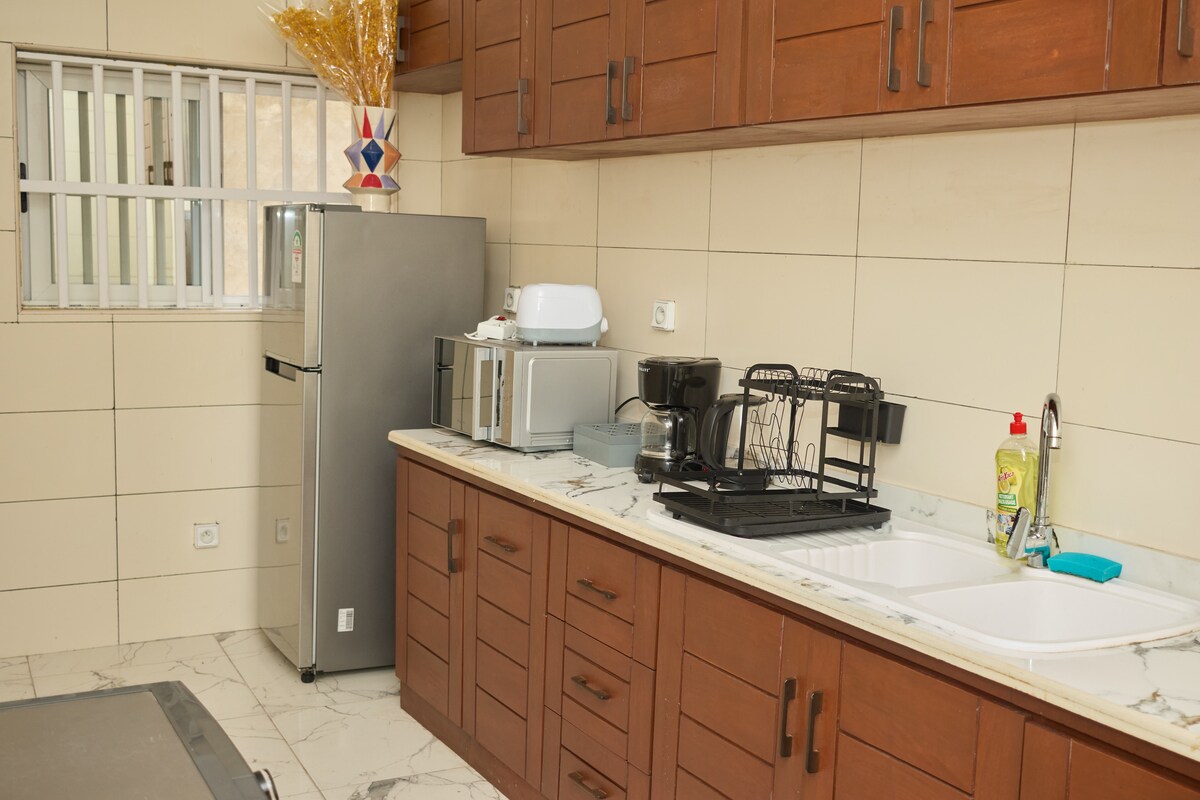 Sveiki atvykę į šį modernų ir erdvų studijos tipo butą Kotonu - savo tobulus namus toli nuo namų ramiame, saugiame rajone. Mėgaukitės pilnai įrengta virtuve, jaukia svetaine su patogiomis sofomis ir išmaniuoju televizoriumi, valgomuoju stalu ir atskiru miegamuoju bei vonios kambariu. Erdvė yra šviesi, švari ir apgalvotai suprojektuota atsipalaidavimui ar darbui. Šis gražus butas yra vos už kelių minučių kelio automobiliu nuo oro uosto, netoli prabangių restoranų Haie vive, taip pat netoli prekybos centrų ir parduotuvių