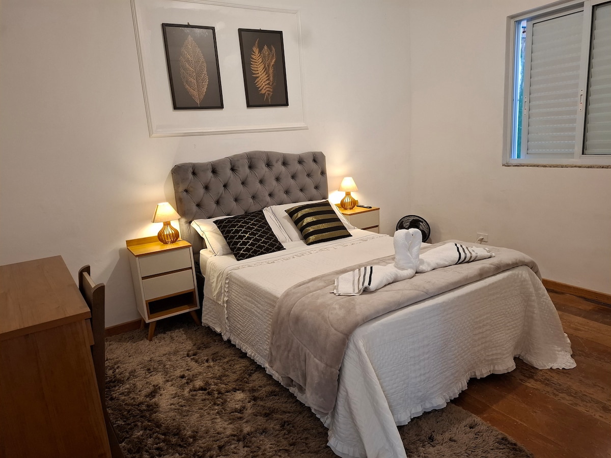 Mėgaukitės šio namo ramybe istorinėje Ouro Preto širdyje. Netoli ramsčio, rožinio, sodo ir konferencijų centro bažnyčių. Puikus pagrindinių miesto lankytinų vietų atspirties taškas. Jame yra jaukūs apartamentai su dvigule lova. Kambarys su dviem viengulėmis lovomis, kurias galima sujungti į dvigulę lovą. Socialinis vonios kambarys. Svetainė su sofa-lova ir valgomojo stalu. Palaikykite virtuvę, kad paruoštumėte užkandį ir pusryčius su mini baru, mikrobangų krosnele ir gruzdintuvu.