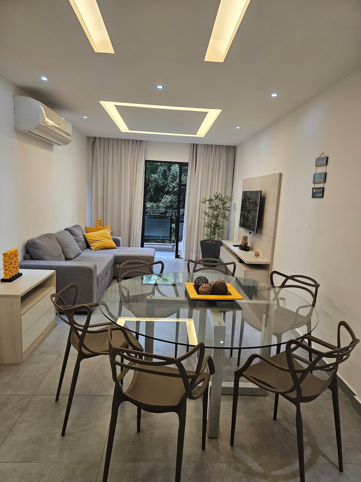 2-jų miegamųjų butas su oro kondicionieriumi, svetainė su įrengta virtuve ir privačia kepsnine. Komfortas ir laisvalaikis su nuostabiu vaizdu į jūrą. Idealiai tinka šeimoms, poroms ar draugams, ieškantiems praktiškumo ir ypatingų akimirkų netoli paplūdimio, netoliese yra turgūs ir restoranai. Jūsų patogumui yra Wi-Fi. Mūsų kondominiume yra suaugusiųjų ir vaikų baseinas, žaidimų kambarys, žaislų biblioteka ir sausos bei garinės pirtys. Taip pat turime automobilių stovėjimo vietą.