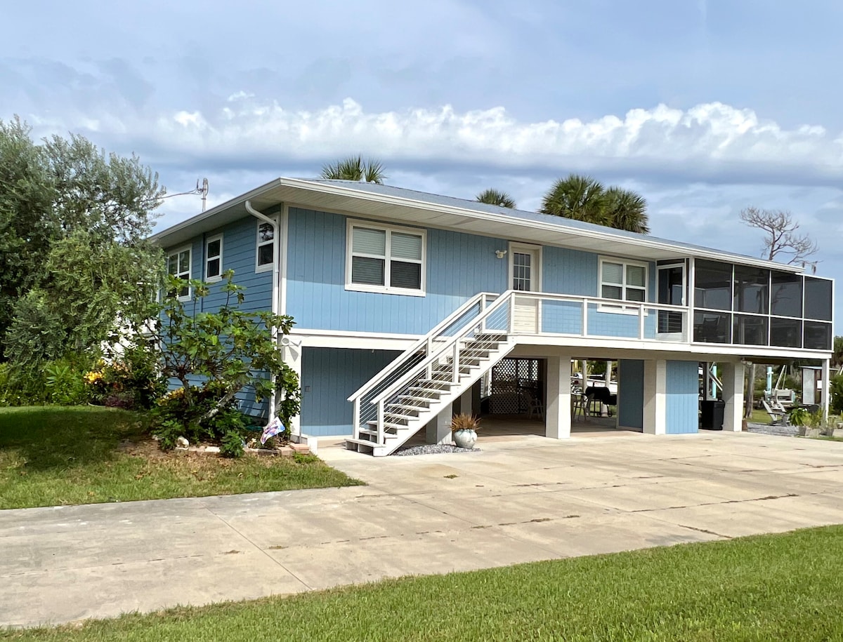 2/1 Ozello pakrantės kotedžas ant gamtos apsuptų, ramybės ir begaliniai vandens bei žiočių vaizdai. Gamtos mylėtojų rojus. Pasaulyje garsus žvejyba ir šukavimas. Reguliarūs delfinų ir lamantinų stebėjimai. Atsipalaiduokite su visa šeima didelėje ekranuotoje verandoje, iš kurios atsiveria nuostabūs gamtos pakrantės vaizdai ir stulbinantys saulėtekiai virš druskos pelkės. Atviro aukšto planas atveria didelę patikrintą verandą su valgomojo ir poilsio erdve, iš kurios atsiveria privatūs ir platūs vandens vaizdai.