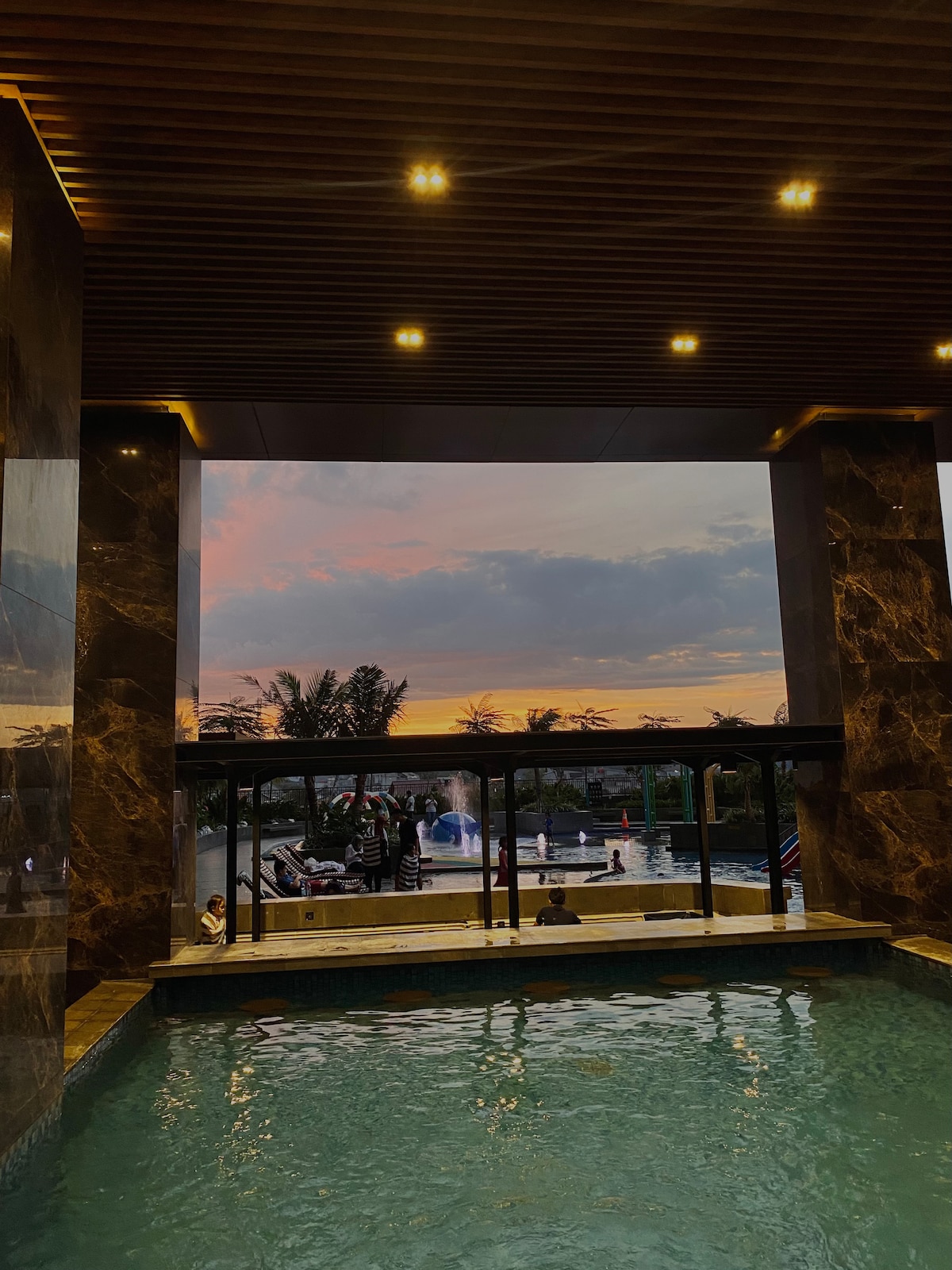 Puikiai tinka šeimos poilsiui, gaudymui ar koncertui. Geriausios būklės, naujai įrengtas su medinėmis grindimis ir specialia darbo vieta. Strategiškai įsikūręs BSD centriniame verslo rajone, tiesiai šalia prekybos centro „Aeon Mall“ (su išskirtine prieiga) ir mokamu keliu. Vos 5 minutės kelio automobiliu iki ICE BSD, QBIG, Breeze, Extreme parko, golfo aikštyno ir kt. Nemokamas Wi-Fi, Netflix ir Premium Youtube. Puikios patalpos atsipalaidavimui, puikus baseinas, vaikų baseinas, žaidimų aikštelės, sporto salė, sauna, sūkurinė vonia ir karaokė.