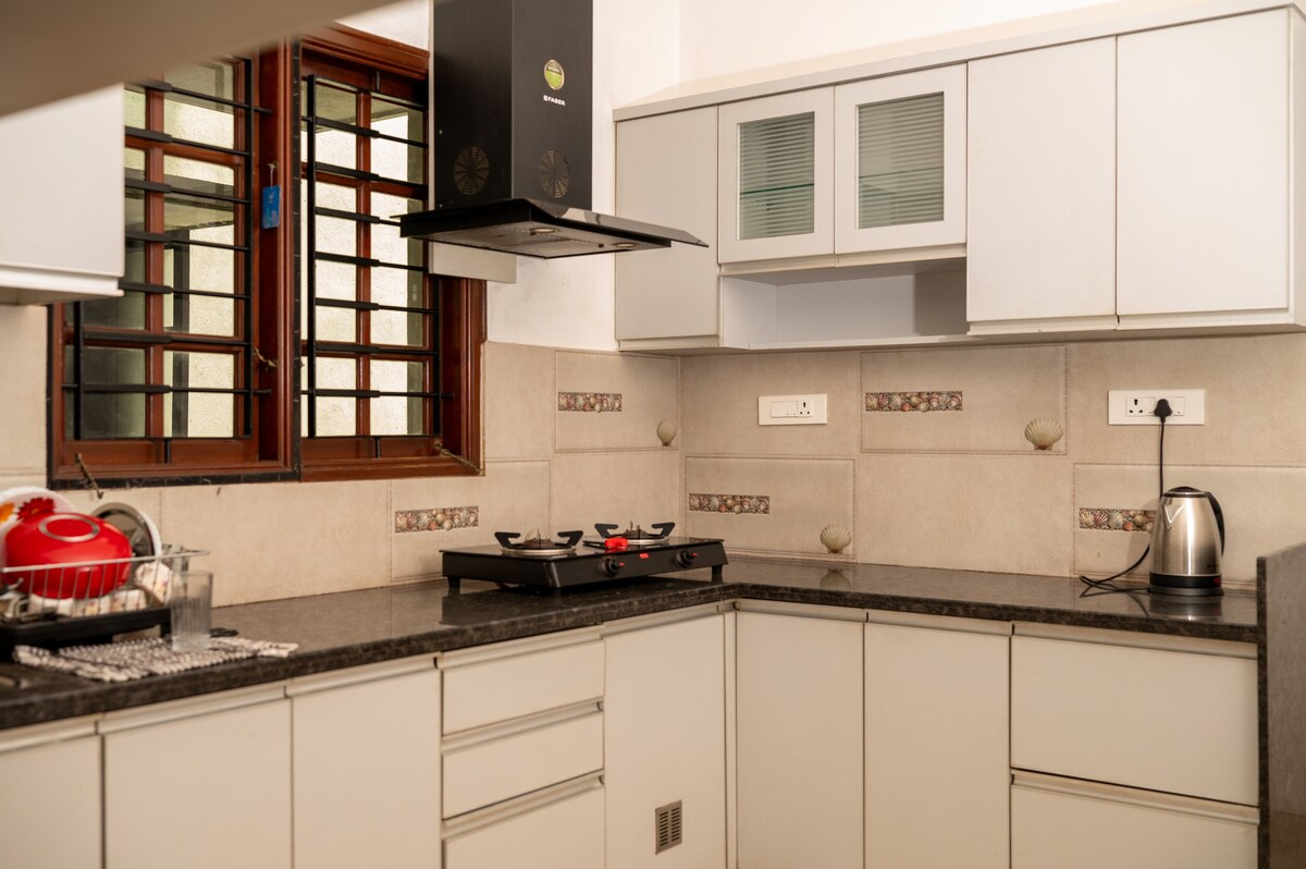 Sveiki atvykę į savo atostogas Mangalore! Nesvarbu, ar keliaujate su šeima į vestuves, lankotės su kolegomis dėl projekto, ar tyrinėjate pakrantę su draugais, mūsų 2BHK svečių apartamentai siūlo puikią pusiausvyrą tarp privataus poilsio ir socialinio gyvenimo. Įsikūrę pačioje strateginio Kottara rajono širdyje, jūs esate puikioje vietoje, kad galėtumėte mėgautis geriausiais miesto pasiūlymais.