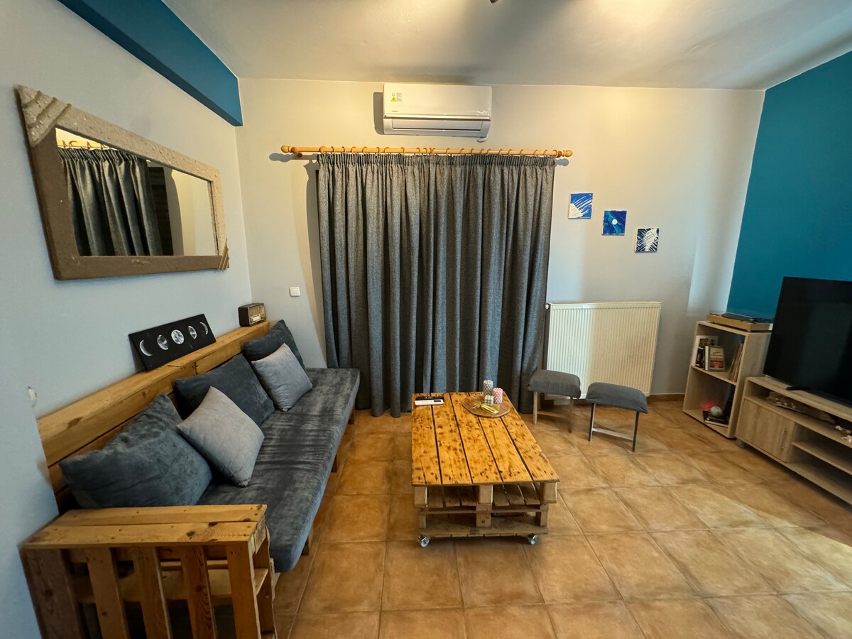 Mikro Rodi yra puikus miesto gyvenimo ir atsipalaidavimo derinys. Šiuolaikinis Airbnb yra Korydalo centre (6 minutės pėsčiomis nuo metro), netoli naktinio gyvenimo, kad būtų patogu, bet pakankamai toli, kad būtų ramu ir ramu. Kiemas yra tikra oazė, kurios centre auga gražus granatmedis. Nesvarbu, ar esate mieste savaitgalio pabėgimui, ar ilgesniam apsistojimui, mūsų Airbnb yra puikus pasirinkimas komfortui Atėnuose.