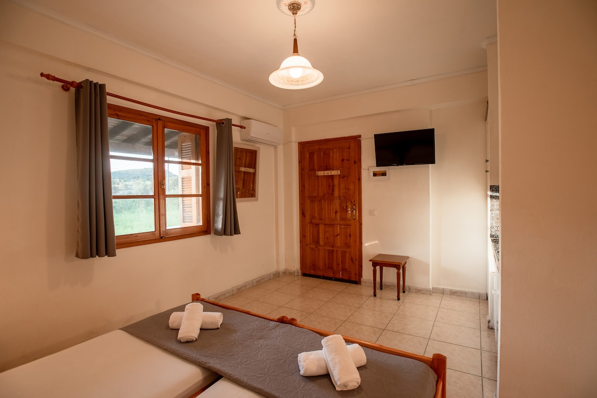 Mūsų akmeninis namas su įlanka yra suprojektuotas taip, kad patogiai tilptų du žmonės ar mažos šeimos, ypač su 55 m2 plotu, daugiau nei 100 m2 plotu, taip pat bendra automobilių stovėjimo aikštele ir vaisių bei daržovių sodu. Iš beveik bet kurios mūsų namų vietos visą dieną galite mėgautis vaizdu į Egėjo jūrą; mūsų lauko virtuvėje galėsite mėgautis vakariene su skaniu vaizdu po medžiais su salotomis salotomis ir kepsnine, kurią paruošėte su daržovėmis, kurias pasiimate iš sodo.