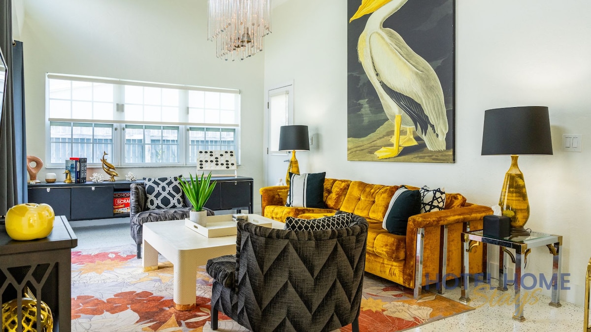 Come for the beach—stay for the backyard. This West Palm retreat feels like your own private resort, complete with mini golf, a hot tub under string lights, fire pit lounge, tiki bar, and lawn games that keep everyone entertained. Inside, the fun continues with a dedicated arcade room featuring Pac-Man, Golden Tee, and Nintendo Switch. Just 10 minutes to the beach and Downtown, and blocks from The Park golf course, you’re perfectly positioned for both relaxation and play.