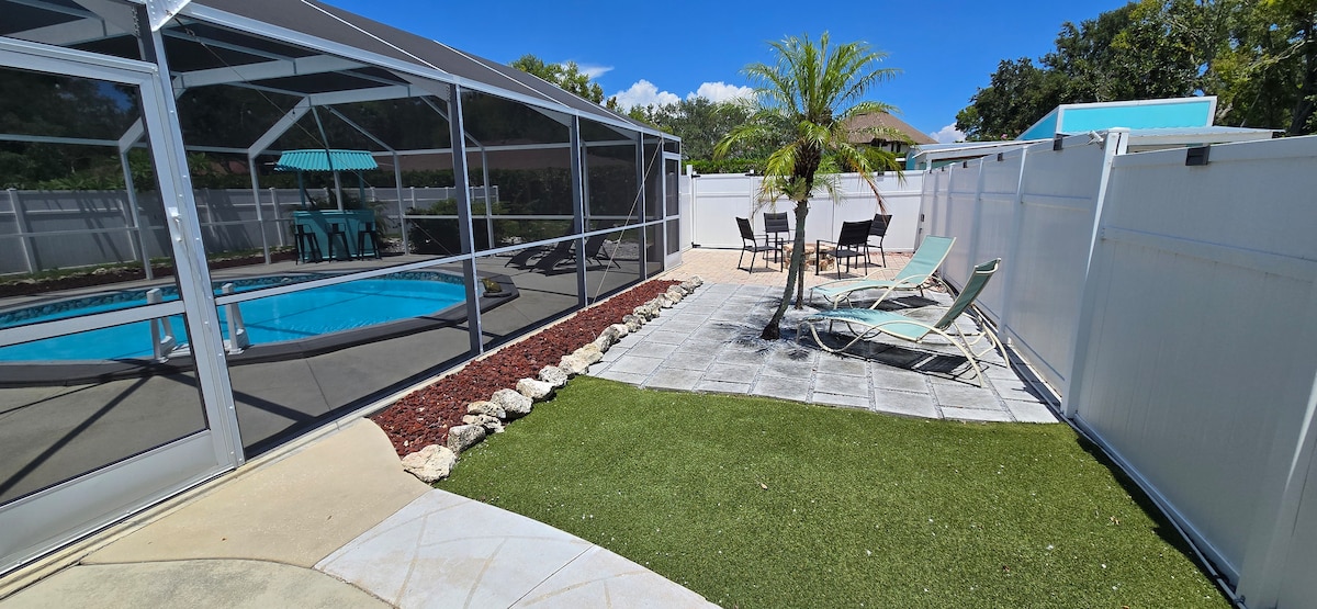 Mėgaukitės lengvu gyvenimu šiuose atnaujintuose atogrąžų namuose! Jūsų privati uždara veranda puikiai tinka sklandžiam poilsiui viduje ir lauke, su šildomu baseinu ir uždara valgomojo ir poilsio zona su 58 colių lauko televizoriumi! Namų interjeras yra šviesus ir atviras su linksmu pakrantės dekoru ir daug vietos išsiplėsti. Viską, ko reikia, aprūpiname gerai įrengta virtuve, dujine kepsnine, žaidimų kambariu, paplūdimio įranga, rankšluosčiais, elektromobilių įkrovikliu! Ramioje kaimynystėje, iš kurios galima greitai pasiekti AMI paplūdimius, IMG, parkus ir takus!