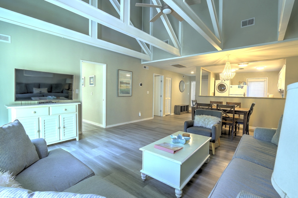Sveiki atvykę į tobulą šeimos kelionę Hilton Head saloje! Ši energinga 3BR, 2,5BA prabangi vila yra profesionaliai dekoruota, išryškinta patraukliu, spalvingu pakrantės dekoru. Viloje yra pilnai suremontuota virtuvė, erdvi ir patogi svetainė, kurioje yra daug būdų atsipalaiduoti ir pailsėti. Lauke yra didelė, privati terasa su dujine kepsnine, lauko valgomojo komplektu ir greita prieiga prie penkių bendruomenės baseinų ir paplūdimio. Laukiami sniego paukščiai ir ilgalaikiai svečiai