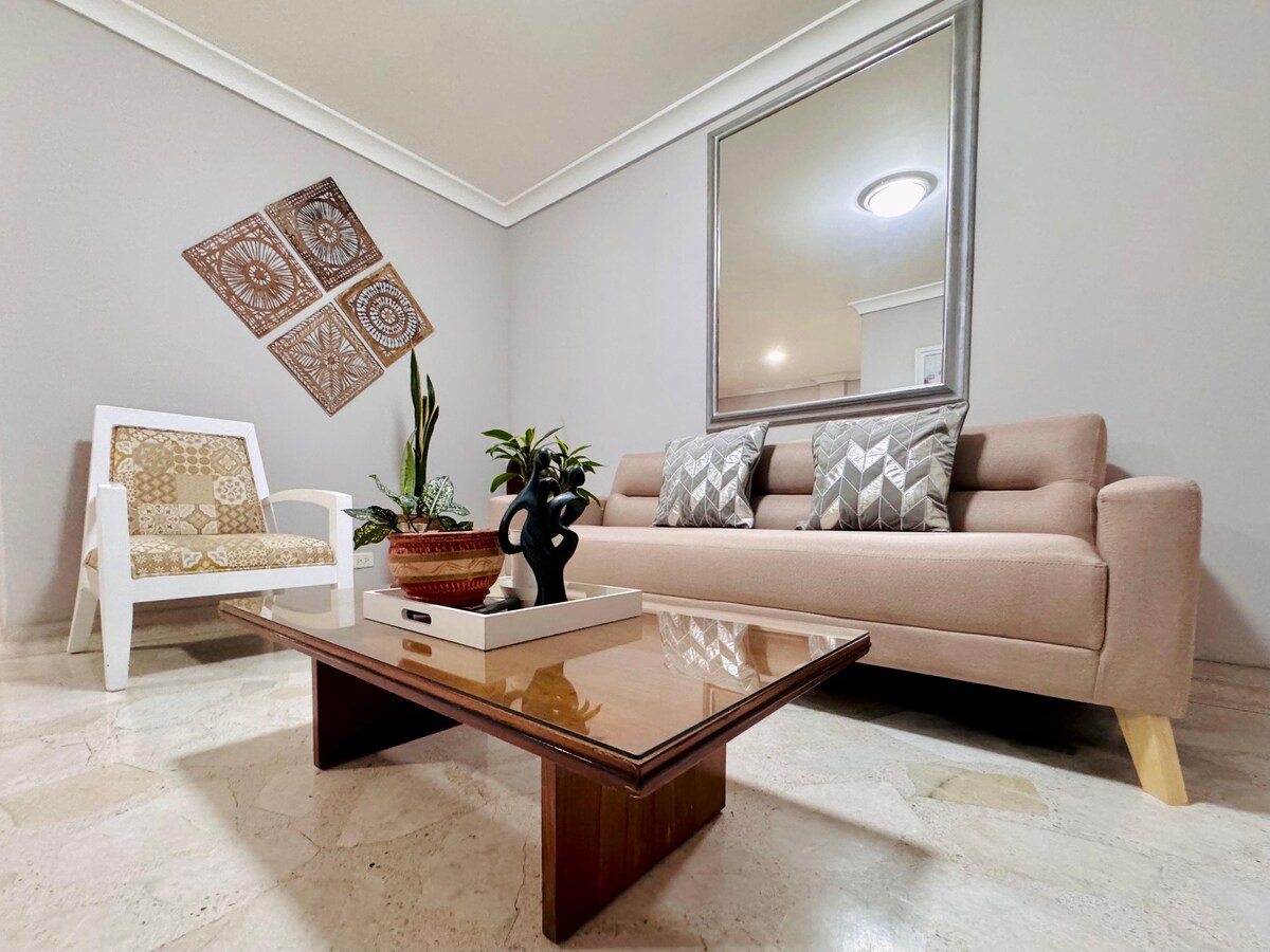 Sveiki, labas rytas, mūsų butas yra 2/2, kuris bus jūsų namai toli nuo namų. TRUMPALAIKĖ IR ILGALAIKĖ NUOMA su oro kondicionieriumi. 15 minučių nuo oro uosto ir šalia UNICENTRO prekybos centro su kino teatru ir daugybe vietų pavalgyti ir apsipirkti. Kalifas yra jūsų kelionės tikslas, vos už 30 minučių kelio. Turėsite viską, ko reikia tinkamoms atostogoms. Bute visą parą dirba apsauga. Butas yra 4-AME aukšte ir nėra lifto, atsiprašome. Bute NERŪKYKITE, yra peleninė.