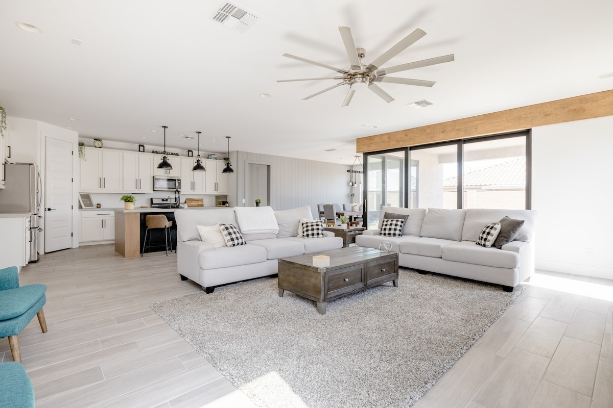 Atsipalaiduokite su visa šeima šiame ramiame būste. Įsikūręs Buckeye AZ, vos už 35 minučių kelio nuo Finikso. 2 miegamieji 2 vonia su ištraukiama sofa patogiai miega 6. Netoliese daug žygių pėsčiomis, ežerai ir apsipirkimas. Mėgaukitės mūsų rezervuaro baseinu (sezoniškai), kepsnine, žaliuojančia ir laužaviete. Naktį styginių šviestuvai suteikia daug šviesos nakties užsiėmimams. Netoli Phoenix lenktynių tako, pavasario treniruočių ir kardinolų stadiono.