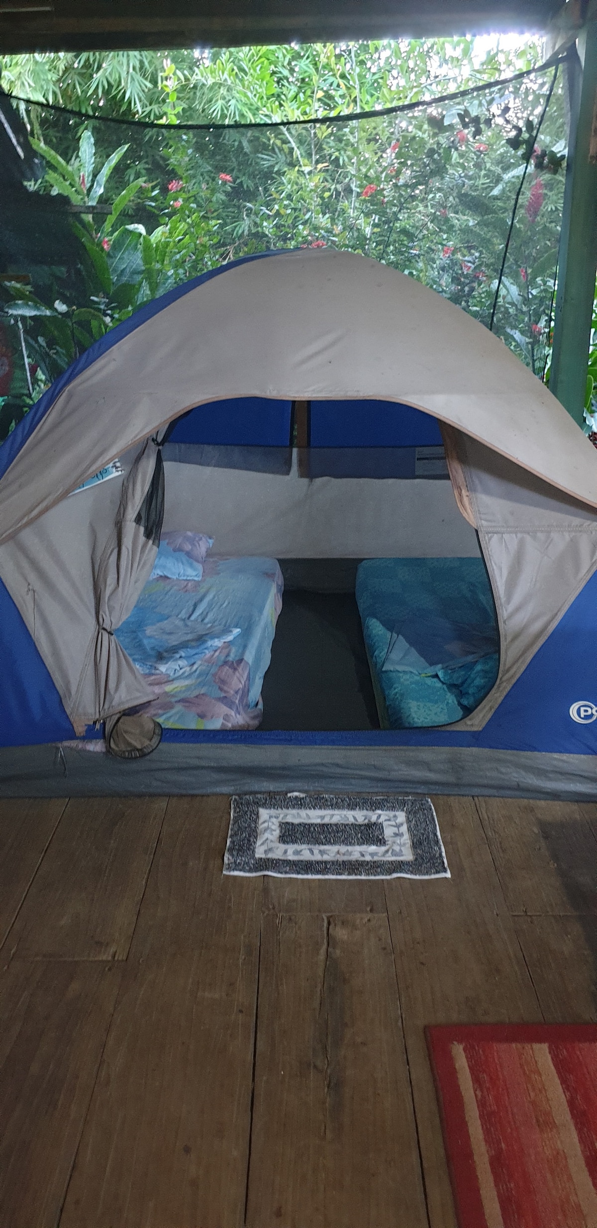 For nature lovers: howler monkeys, sloths, capucines, armadillos plus more live around the site. A birders paradise. 20 minute hike from the main road on a rock country road. Hilly areas. No neighbors but amazing hosts! We have an outdoor shower and composting toilet. A basic cooking area with mosquito netting, a smaller tent inside the outer tent that is even more protected. A expedition hammock to relax in. Wood to burn if you want to make a fire outside.