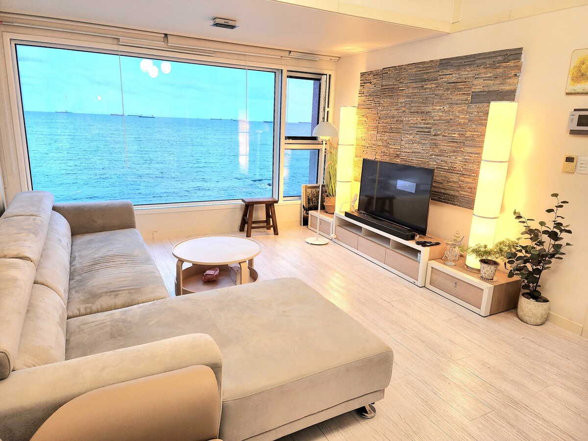 Apgyvendinimas su gerai įrengta mini paplūdimio ir jūros kelio promenada Dong-gu, Ulsane. Iš svetainės atsiveria vaizdas į jūrą. Jūrą galite matyti priešais save tiek svetainėje, tiek kambaryje. Saulėtekio ir saulėlydžio vaizdai yra premija. Tai erdvus 34 pyeong būstas. Tinka šeimos kelionėms, verslo kelionėms ir susitikimams. 🎈Po 21 val. netriukšmaukite. G. Namų apačioje skundai. Prašome netriukšmauti tarp aukštų po 21 val. (Jokių garsų, muzikos, vakarėlių ar žaidimų naktį)