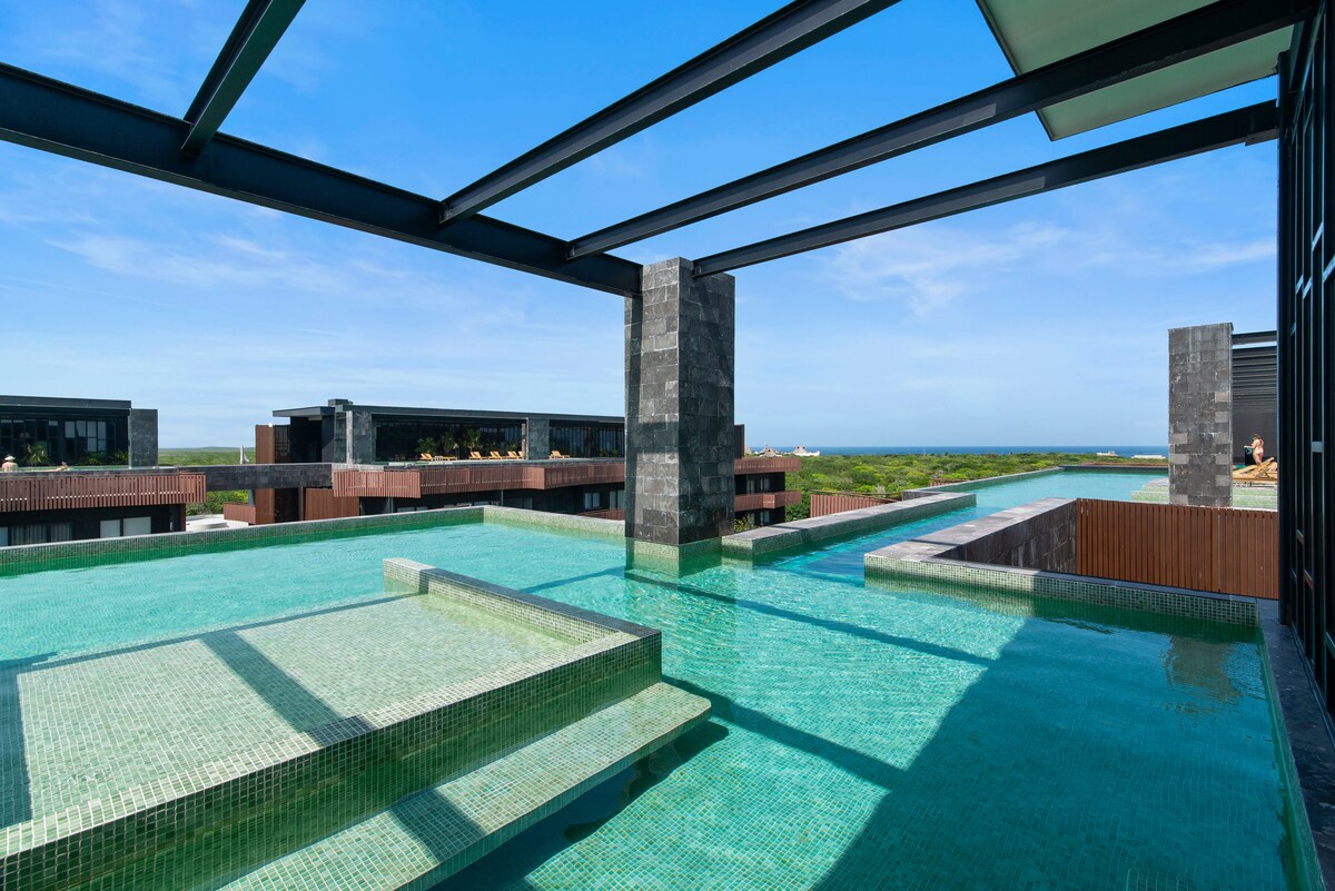 Nuostabus lofto tipo butas su tiesiogine prieiga prie baseinų, netoli Tulumo centro ir vos už kelių minučių nuo įspūdingo paplūdimio ir Tulumo paplūdimio klubų. Mėgaukitės keliais nuostabiais baseinais, ant stogo esančiu baseinu, saulės lovomis, gražia sporto sale, visą parą dirbančiais darbuotojais, stipria oro kondicionieriumi, liftu, greitu Wi-Fi (400 Mbps), užtemdančiomis užuolaidomis, 55colių išmaniuoju televizoriumi, pilnai įrengta virtuve ir privačia automobilių stovėjimo aikštele. Patirkite valgymą lauke arba tiesiog gėrimus su gražiais panoraminiais vaizdais stogo restorane