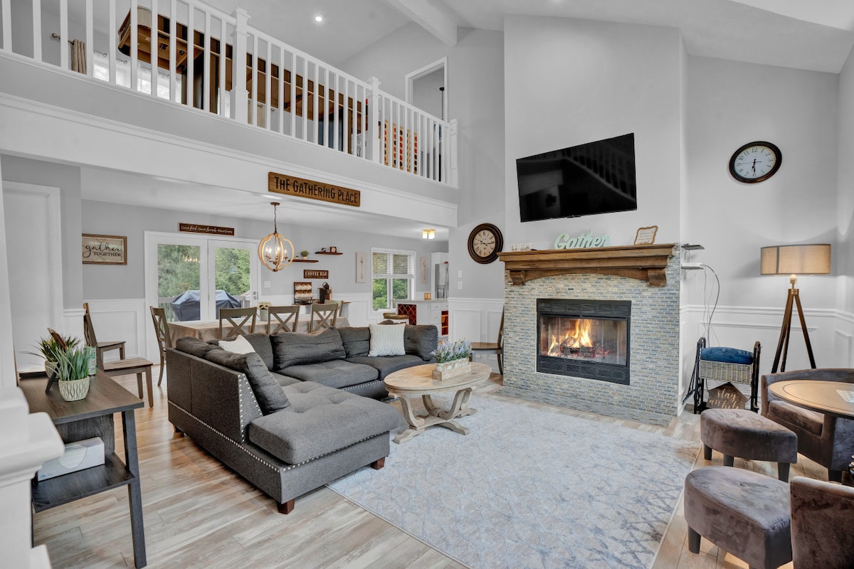 Miegokite pasakoje Pokono pilyje! Įgyvendinkite svajonę šioje 2300 kv. pėdų istorijų knygų poilsiavietėje, kur miegosite kaip karalius tikroje pasakų pilyje. Atsipalaiduokite prabangoje su burbuliuojančia sūkurine vonia, kedro pirtimi ir begaliniais stebuklingais akcentais. Apsirenkite kaip karaliai, karalienės ar riteriai ir tyrinėkite teritoriją su privačiu vieno akro tvenkiniu ir galbūt pagausite auksinę žuvį! Su žavingais miegamaisiais, nuotykiais lauke ir nepamirštamu žavesiu - tai puiki kelionė, kurios laukėte!