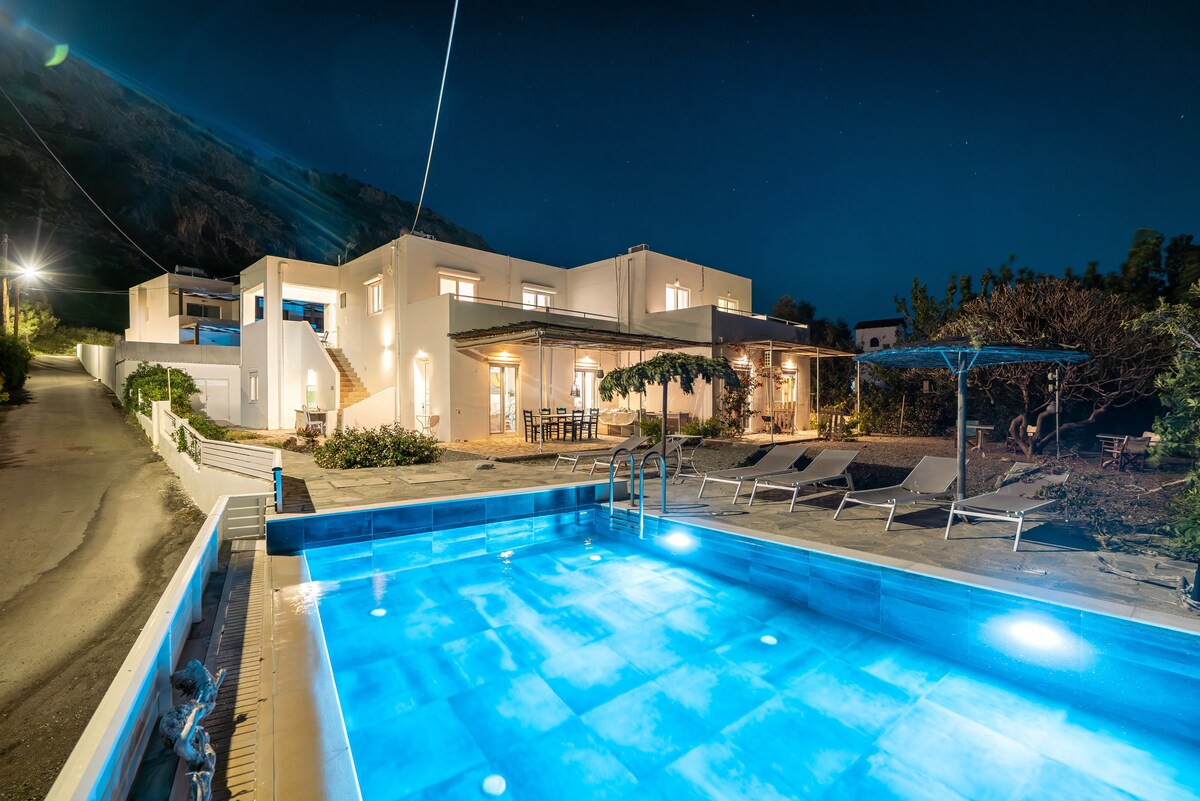 Atnaujinta 2020 & 21 Svečiams užlipus į pagrindinę šios atostogų nuomos terasą, meilė gamtai iš karto tampa akivaizdi. Atrodo, kad privatus baseinas su begalybės briauna kybo virš jūros. Didelė pergola apima pramogų ir poilsio zonas. Dviejuose išskirtiniuose miegamuosiuose šioje viloje gali apsistoti iki keturių svečių. Apatiniame aukšte yra du dviviečiai miegamieji su vonios kambariais. Viršutiniame aukšte yra pilnai įrengta virtuvė, valgomasis, W.C ir svetainė.