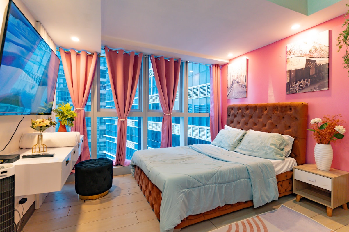 Experience style and convenience in this modern BGC studio! Just a 2-minute walk to Venice Canal Mall, it’s perfect for work and leisure. Enjoy a hidden pullout queen bed, an expanding table for dining or work, and an 84” projector for a cinematic experience. Steps from cafes, groceries, and restaurants, everything you need is within reach. Whether you're unwinding, exploring, or working remotely, this cozy retreat is the ideal staycation spot! 🎬🎮✨
