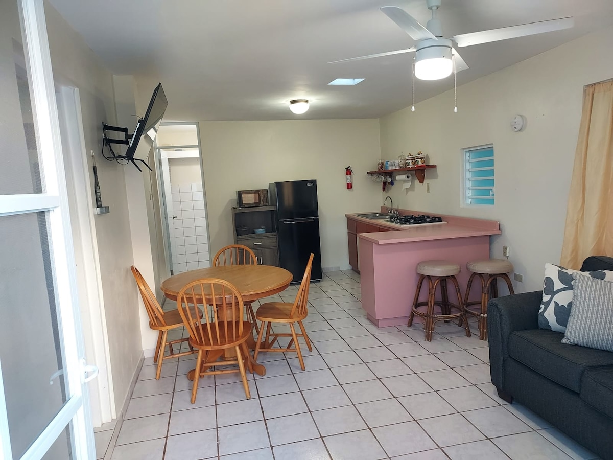 Sveiki atvykę į „Parguera Suites“ kampelį - šviesų ir jaukų vieno miegamojo butą uždarame komplekse. Mėgaukitės oro kondicionieriumi, Wi-Fi, visa virtuve, privačiu balkonu ir nemokama automobilių stovėjimo aikštele. Vos už 5 minučių kelio pėsčiomis nuo Poblado La Parguera, restoranų, parduotuvių ir garsiosios bioliuminescencinės įlankos. Puikiai tinka poroms, nuotoliniu būdu dirbantiems darbuotojams ar pavieniams keliautojams. Priimami maži augintiniai. Įskaičiuota bendra prieiga prie baseino - jūsų laukia ramus pabėgimas!