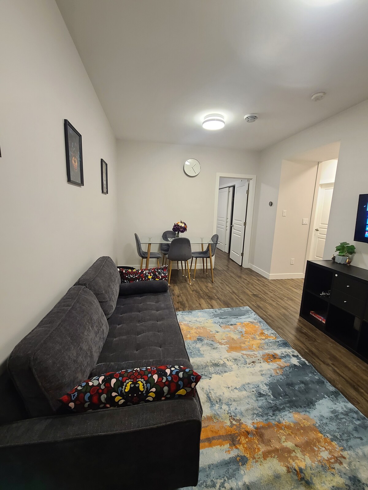 Our newly-renovated and romantic NYC loft-inspired basement suite offers over 1000 square feet of luxurious living space. With its high ceilings, floor-to-ceiling glass walls and French doors, and cozy in-floor heating, you'll feel like you're in a real loft. The high-end kitchen and bathroom add a touch of sophistication, and the 90s Simpsons arcade game provides hours of entertainment. Book your stay with us and experience the luxury and comfort of our suite.