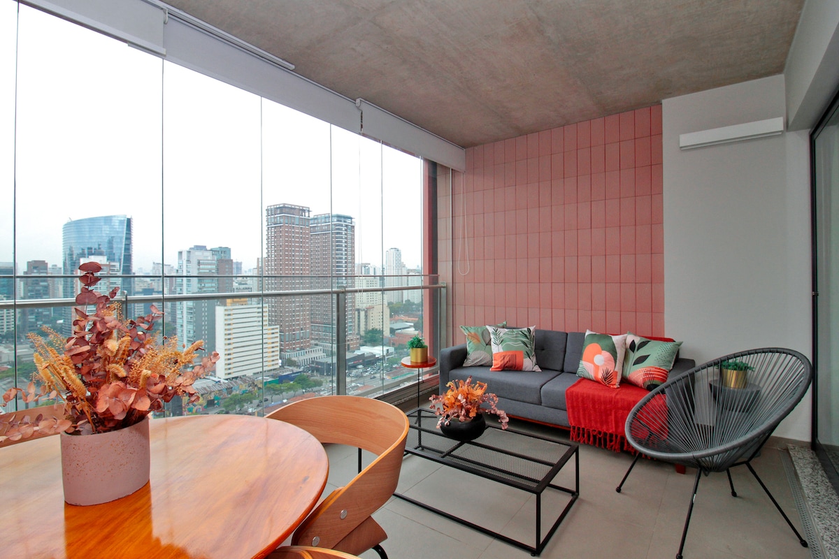 Priimkite svečius ir jauskitės kaip namie. Butas yra visiškai naujas, specialiai jums suprojektuotas ir turi nepriekaištingą dekorą, labai praktiškas kasdieniam gyvenimui. Vaizdas įspūdingas! Butas yra 28-ame aukšte. Esame puikioje vietoje San Paule, Pinheiros rajone, netoliese yra restoranai, prekybos centrai ir kepyklos. Tai 40 m2 (430 kv. pėdų) plotas su 1 miegamuoju ir 1 vonios kambariu. Iki Fradique Coutinho metro stoties galima nueiti pėsčiomis (vos už 2 kvartalų).