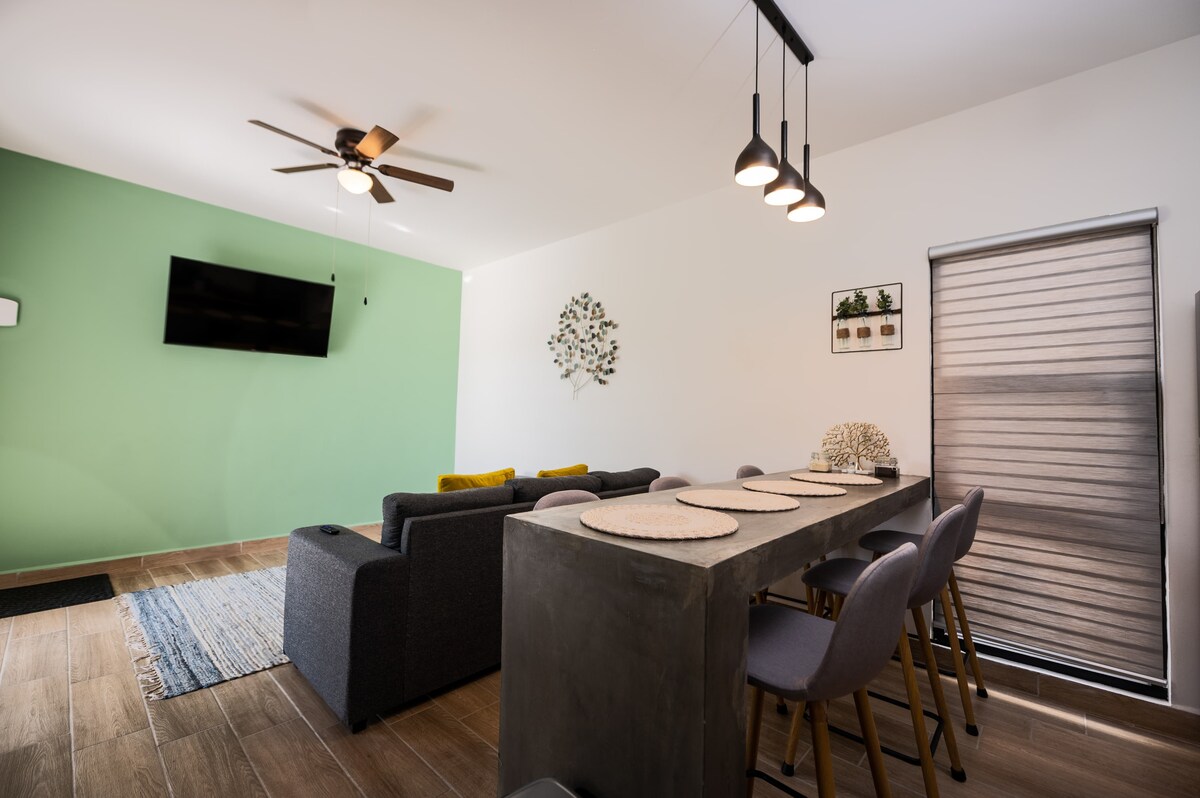 ¡Disfruta tu estancia en estas modernas villas con alberca, totalmente equipadas! Doce Durmientes, cuenta con 5 villas que se encuentran a 3min de Parvada, dentro de la zona podrás encontrar una gasolinera, Oxxo, y a 10 min el Centro Histórico (Tiempos estimados en automóvil). Es un establecimiento que destaca por su hermoso jardín, piscina, zonas de fogata y una espaciosa palapa, estacionamiento, y wifi en todas sus instalaciones. Contamos con lugar de estacionamiento para 2 carros.
