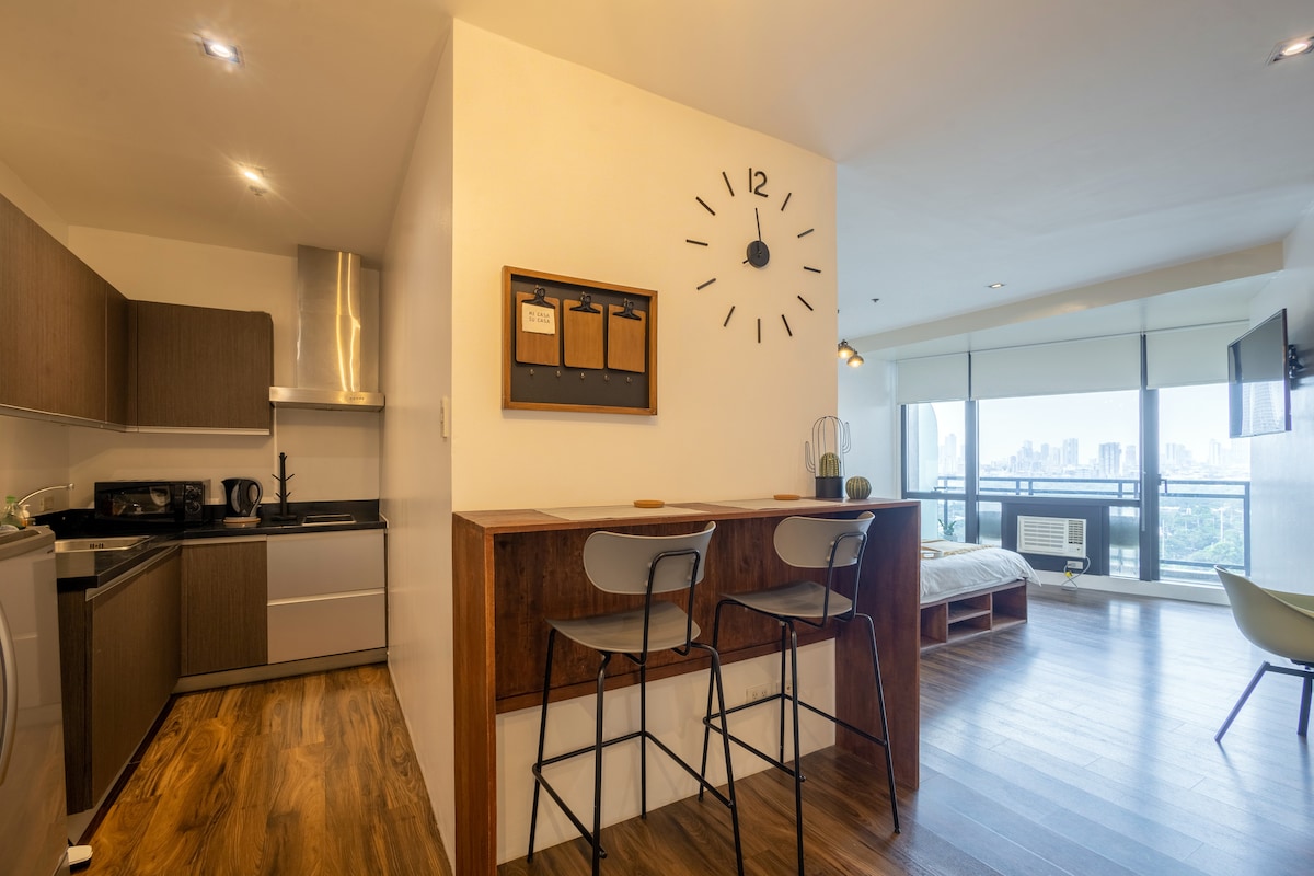 Makati 1BR su balkonu - vaizdas į miestą ir įlanką/Netflix/Wi-Fi