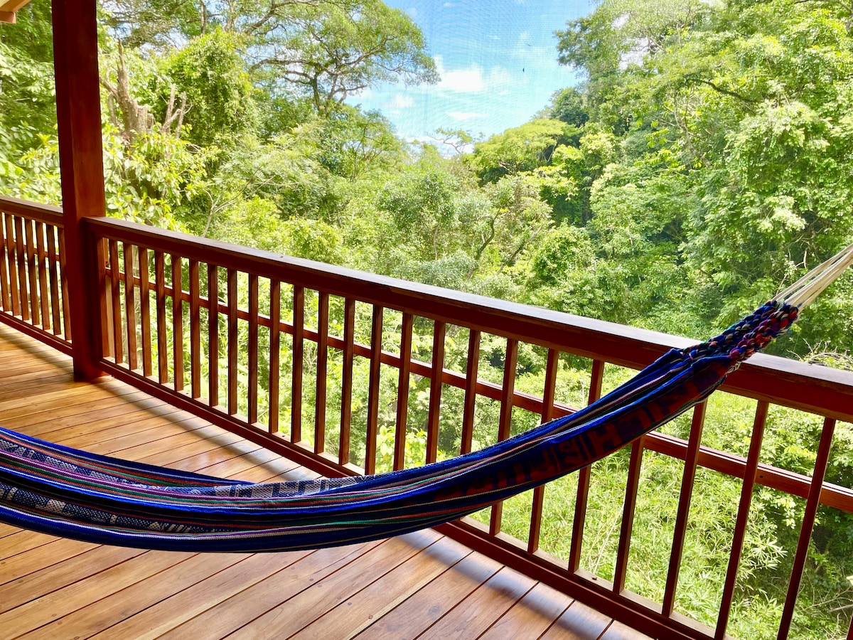 Įspūdingas vienaaukštis vasarnamis po atviru dangumi/ namelis medyje - laukinė gamta, banglentininkas ir jogos rojus! Pabuskite nuo paukščių, staugiančių beždžionių ir bangų. Mėgaukitės diena ir naktimi su džiunglių ir vandenyno garsais, kvapais ir vaizdais. Įsimylėkite nuostabų vaizdą! Galite tikėtis unikalios veiklos lauke su susitikimais su laukine gamta, privačios jogos su 360° vaizdu į vandenyną ir džiungles bei puikiu banglenčių sportu, tik 3 min. pėsčiomis iki Punta Banco paplūdimio ir 15 min. automobiliu iki Pavones.