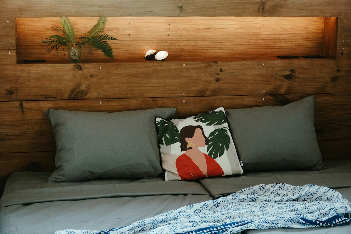 Išbandykite Punta Banco elementarų grožį ir atgaivinančią grožį ir atgaivinančią Punta Banco dvasią mūsų visais metų laikais esančioje „Wavefront“ studijoje. Įsikūręs tarp džiunglių ir vandenyno ant pusės akro vešlių paplūdimio sodų, mūsų su meile pertvarkytame bananų konteineryje yra jaukus ir sausas miegamasis su oro kondicionieriumi, virtuvė, erdvus lauko vonios kambarys ir šešėlinis tikmedžio priekinis denis, kuriame galite atsipalaiduoti jūros vėjyje. Mūsų studijos puikiai tinka įžvalgiam skaitmeniniam klajokliui, anksčiau laukinių bangų skalikui arba vandenynui.
