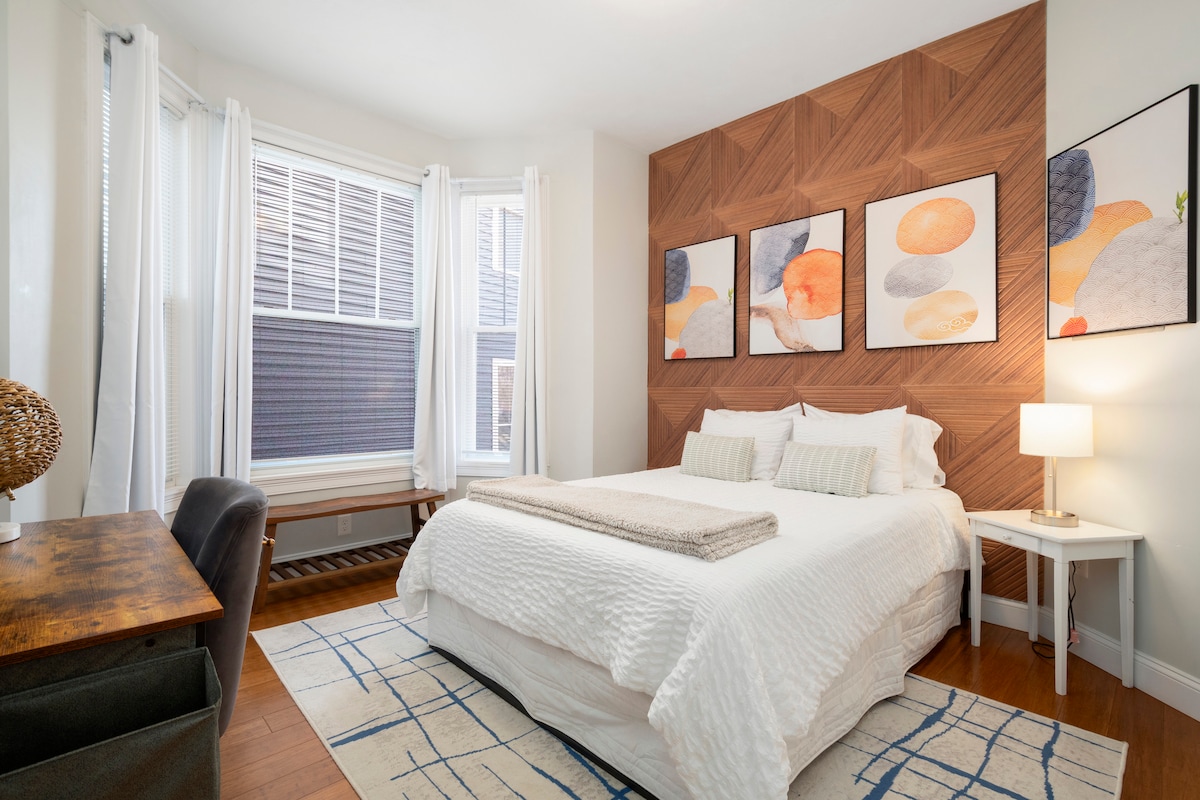 Saulėtas, kviečiantis trečias aukštas rytinėje Providenso pusėje. Vienas kvartalas nuo Oak Bake Shop, Providence Bagel, Whole Foods; daug daugiau per mylią. Patogi dvigulė lova + sofa-lova, privati vonia, Apple TV. Puikiai tinka ilgalaikiams svečiams ir savaitgalio lankytojams. Yra vidinis kiemas, kepsninė, skalbykla, bet dalijamasi su namu. Galimas sandėliavimas rūsyje ilgalaikėms viešnagėms. Vietose lubos yra žemos, aukštesnės nei 6pėdos gali būti nepatogios.