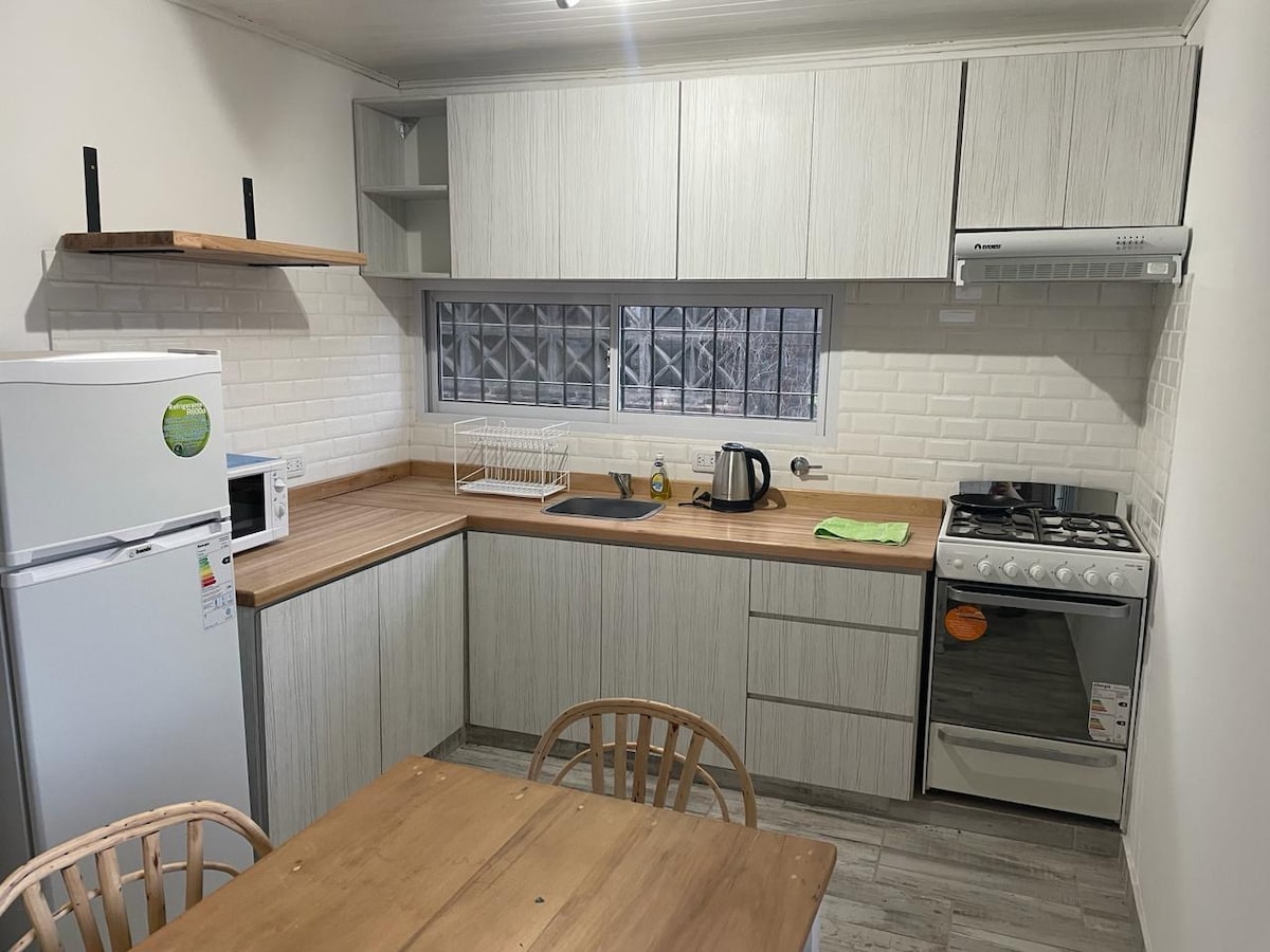 Cálido bungalow ubicado en la ciudad de San José, Entre Ríos, con amplio parque, piscina habilitada en temporada estival y quincho. Ideal para parejas, amigos o familias de hasta 4 personas. Cuenta con excelentes servicios y equipamiento, en una de las zonas más tranquilas de la ciudad pero aún así, cerca de todo, a menos de 500mts. de Autovía Artigas (Ex Ruta 14) y a 1500 mts. del centro de la ciudad, en el centro de la Microrregión Turística Tierra de Palmares. ¡Te esperamos!