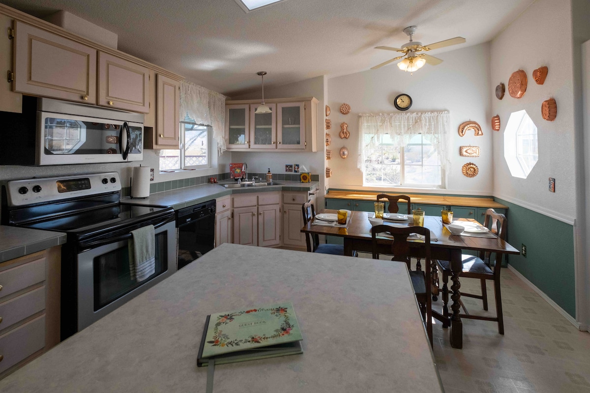 Užsisakykite šiandien, nesigailėsite! Pabėkite netoli Didžiojo kanjono ir Midaus ežero. Žvaigždė ramiai mūsų jaukiuose namuose. Užsakymas tą pačią dieną galimas iki 19 val.! Švarios, patogios lovos ir nuostabūs vaizdai į Grand Wash uolas. Puiki kelio stotelė. Džošua medžių gausu! Pamaitinkite ir fotografuokite paukščius ir dykumos gyvūnus stambiu planu mūsų kieme. Išsamus keliautojo vadovas. Atsineškite savo maisto ir malkų arba apsipirkite iš anksto mūsų vietinėje Meadview prekyvietėje. Mūsų trečiame miegamajame nėra durų, už kurių būtų privatumas. 1 ir 2 miegamuosiuose yra privatumo durys