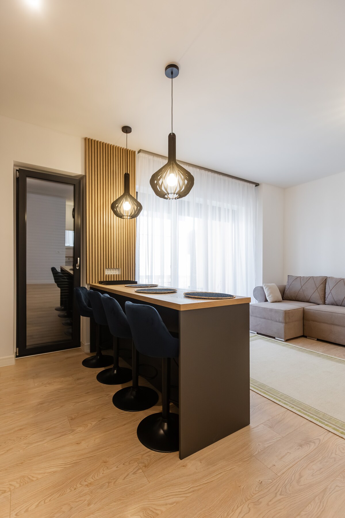 Šviesus naujas butas su moderniu dizainu ir nemokama automobilių stovėjimo aikštele. Jis yra prie įėjimo Timišoaroje, Esso degalinės kaimynystėje. Bute įrengta: - Pilnai įrengta virtuvė su visais reikalingais daiktais: elektrine kaitlente, orkaite, indaplove, šaldytuvu, kavos aparatu ir indais. - Atvira kriauklė, kurioje svečiai gali mėgautis filmu, patogi sofa, išmanusis televizorius - Miegamasis su dvigule lova -Kūdikis su dušo kabina ir skalbimo mašina su džiovykle.
